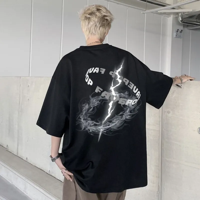 TONYBEAR Мужская одежда Летний 2025 Американский 100% хлопок Короткий рукав T-рубашка для подростков с принтом Мужская