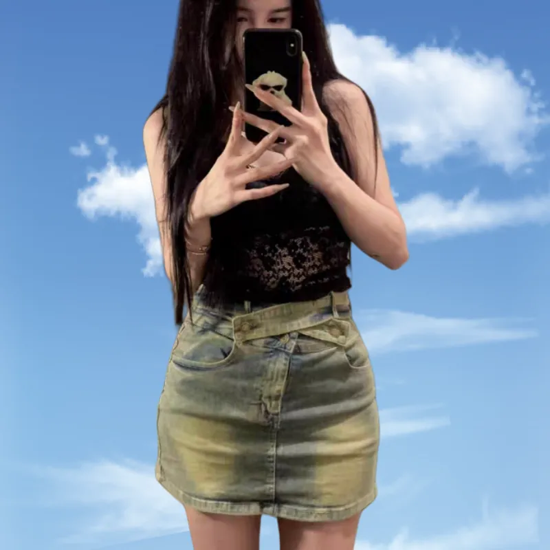 TONYBEAR Женская одежда Летний 2025 Американская Горячая девушка Низ Шаговый шов Тело-компрессия Маленькая Юбка Удобная Облегающая крой Женская