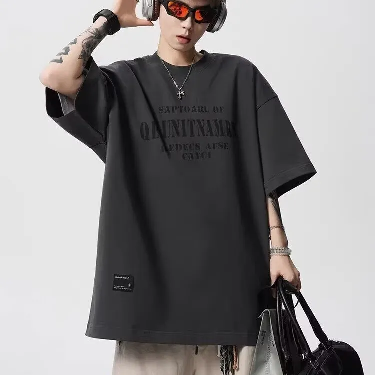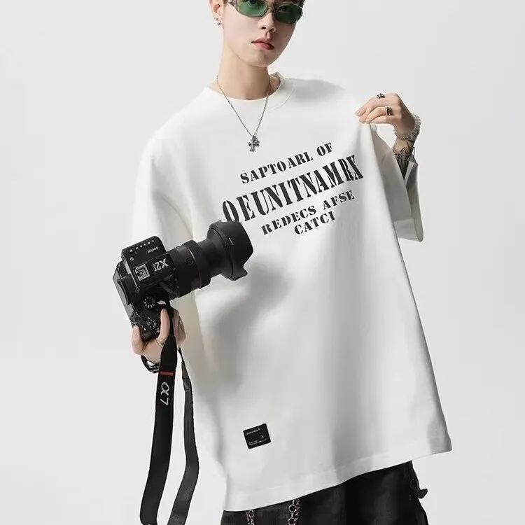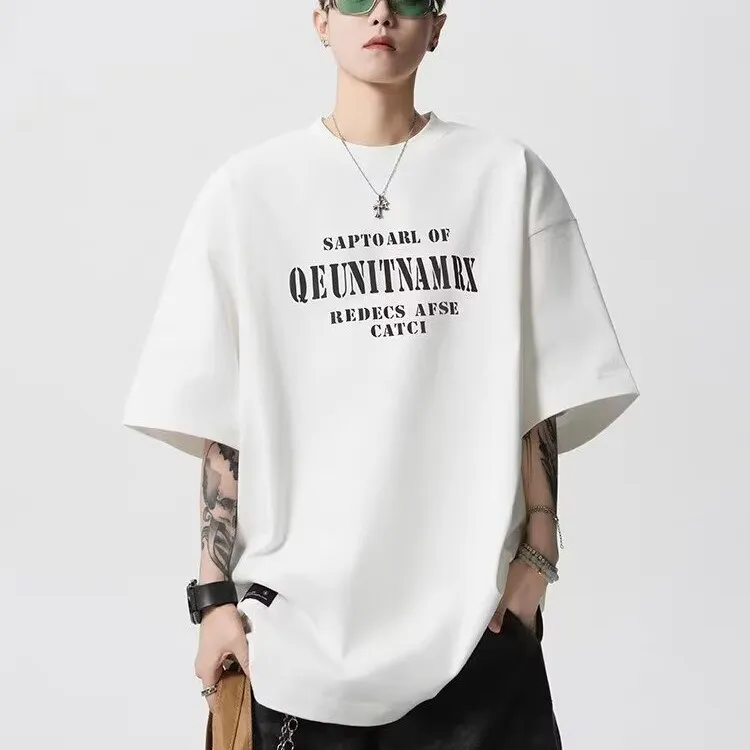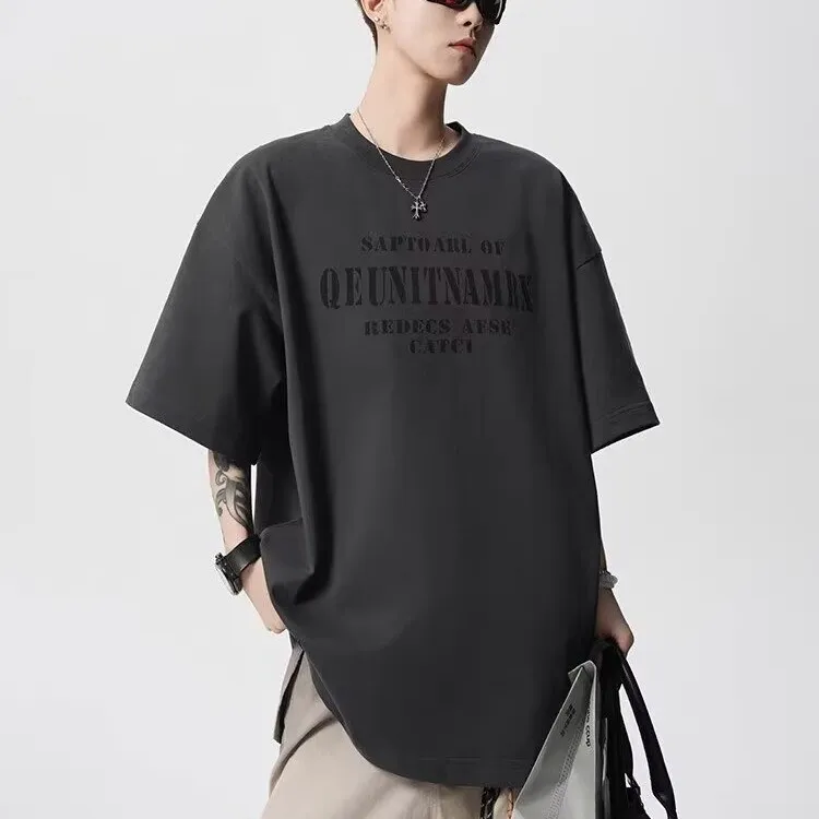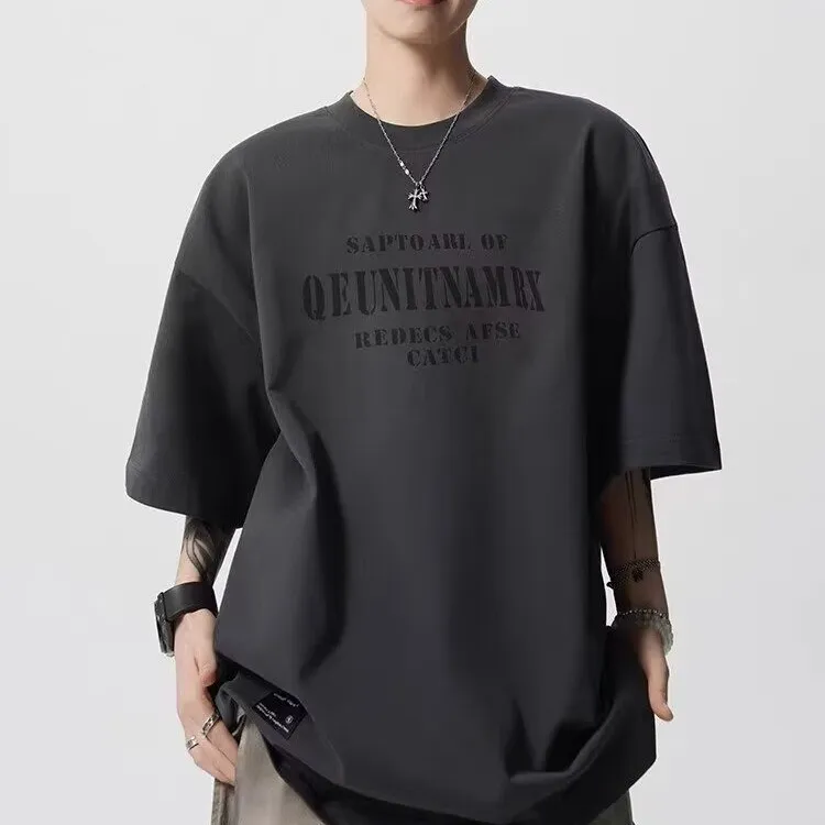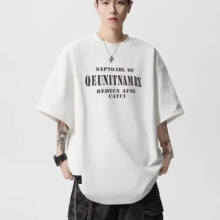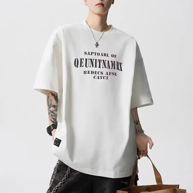 TONYBEAR Повседневный Нишевый Универсальный Мода Дизайн Мода Свободный крой Топ с рукавами длиной до локтя Мужской
