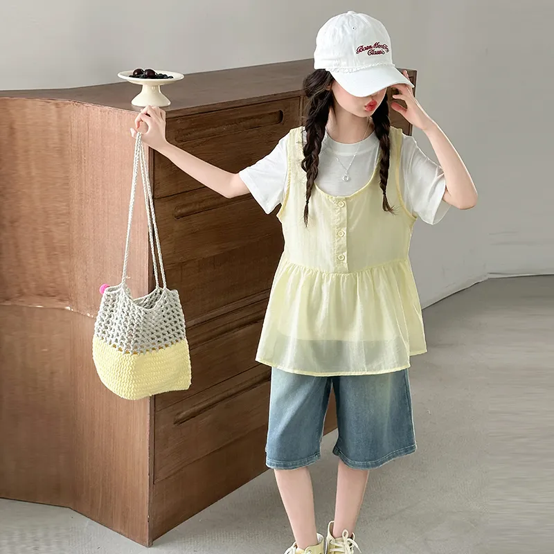 Цвет:Желтый комплект из двух предметов + джинсы