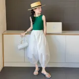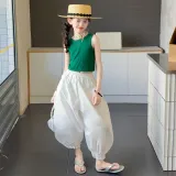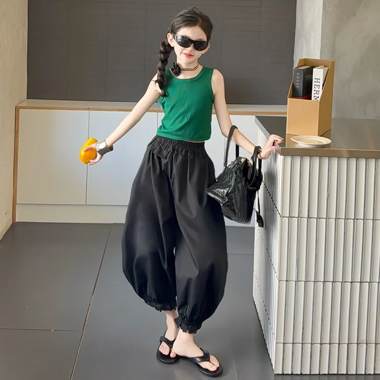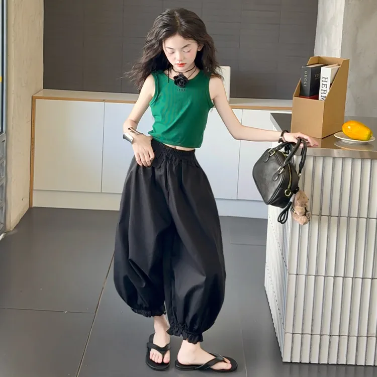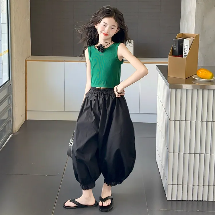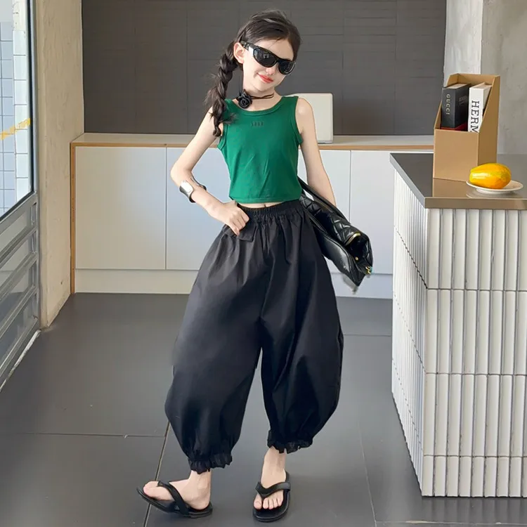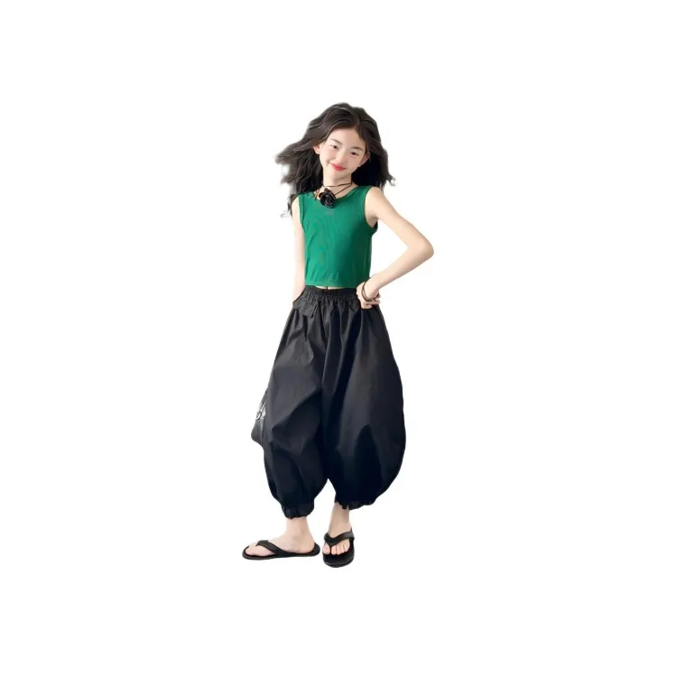 Комплект: Зеленый топ без рукавов, черные штаны