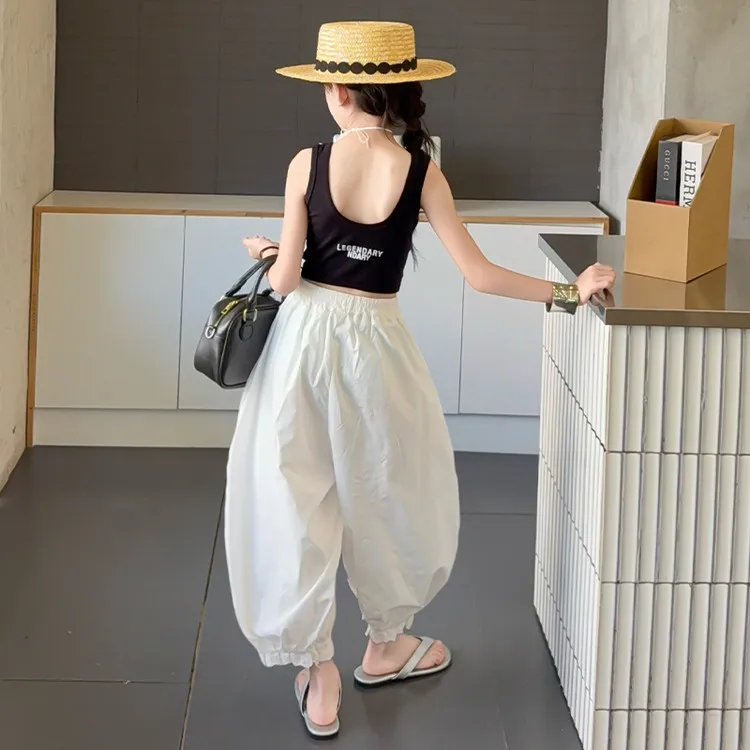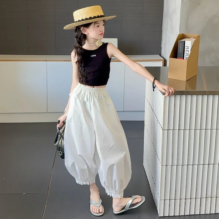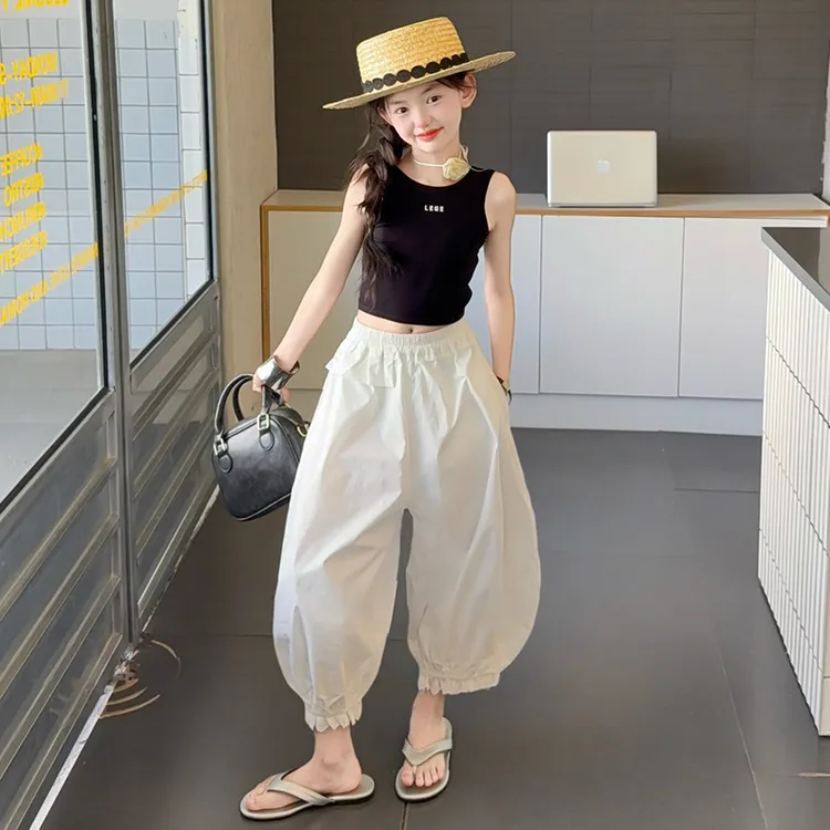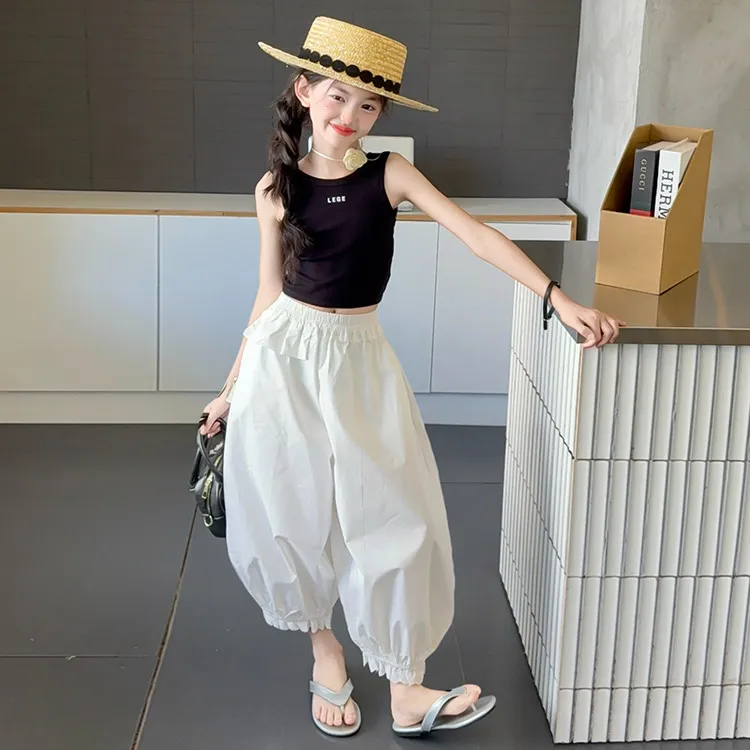 Черный топ, белые штаны