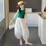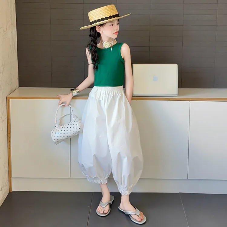Цвет:Зеленый топ, белые штаны