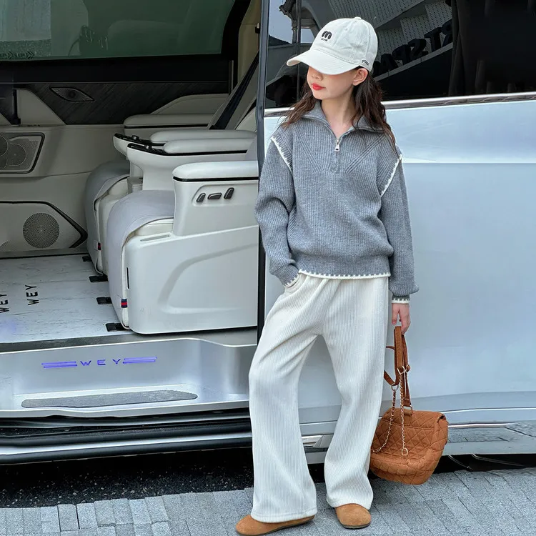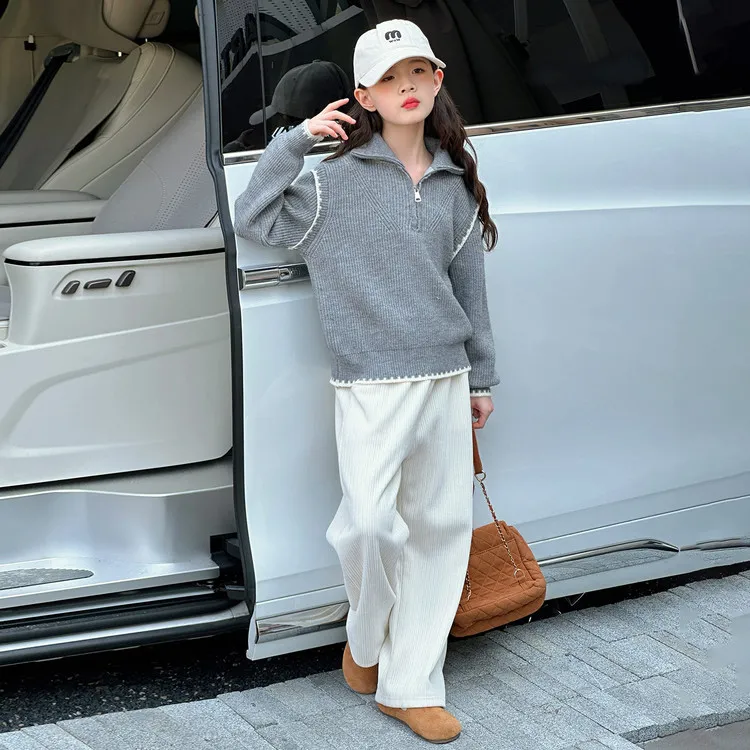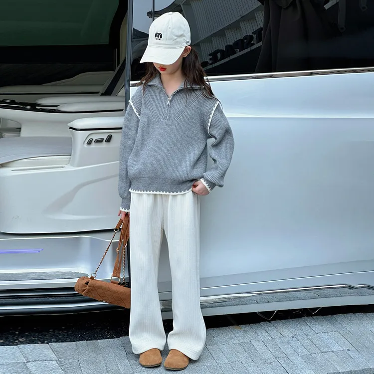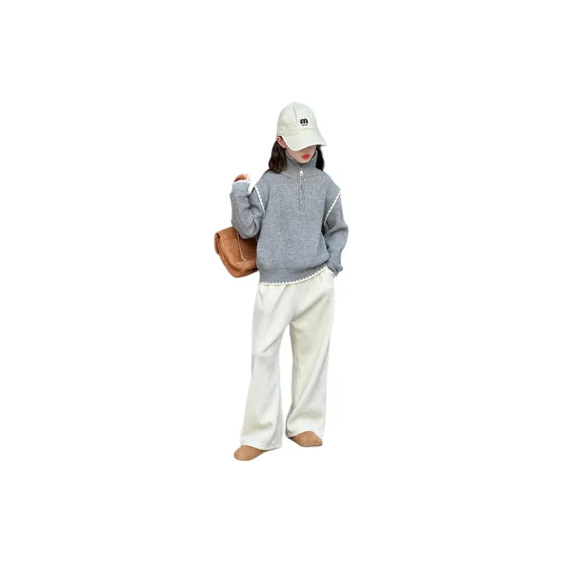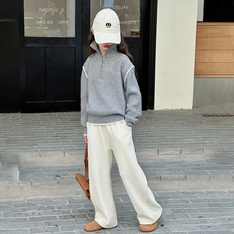 Цвет:Gray Sweater Beige Regular Pants Серый свитер, бежевый, стандартный, брюки
