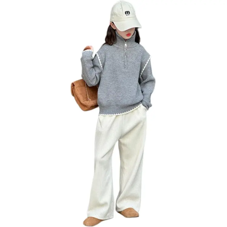 Серый свитер, бежевый, стандартный, брюки