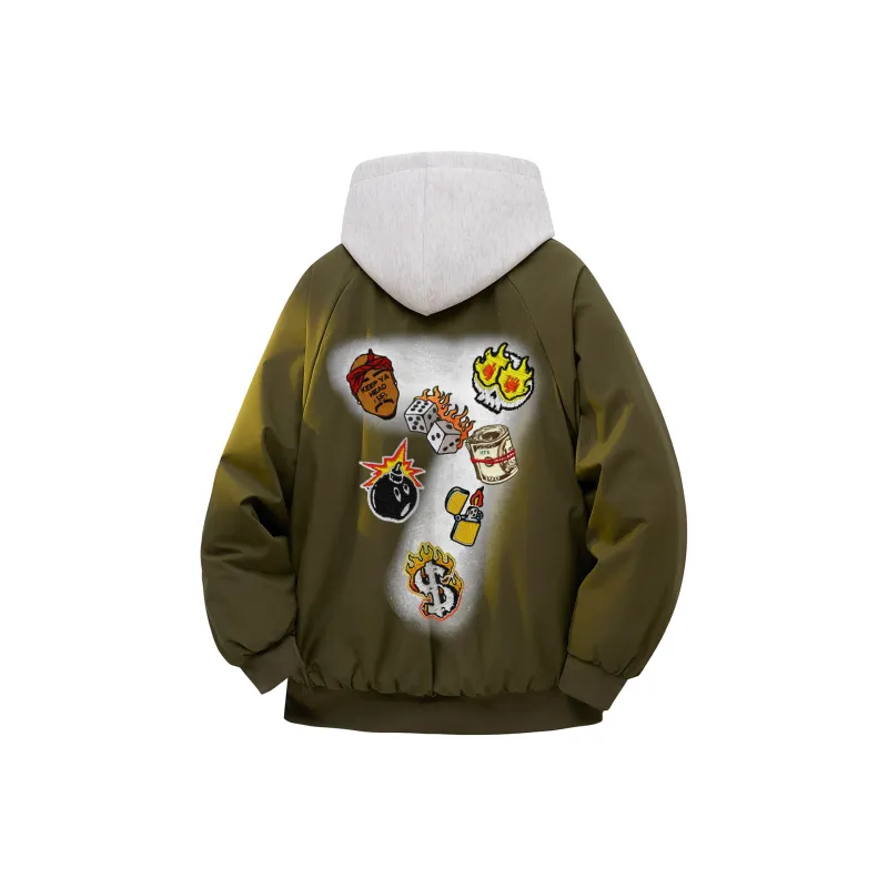 Армейская зеленая куртка (в комплекте с высококачественным тяжелым бело-серым свитшотом с фотокемией)