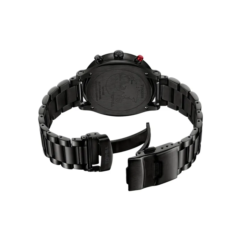 Чёрный корпус, чёрный ремешок, чёрный циферблат