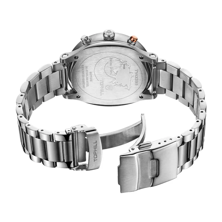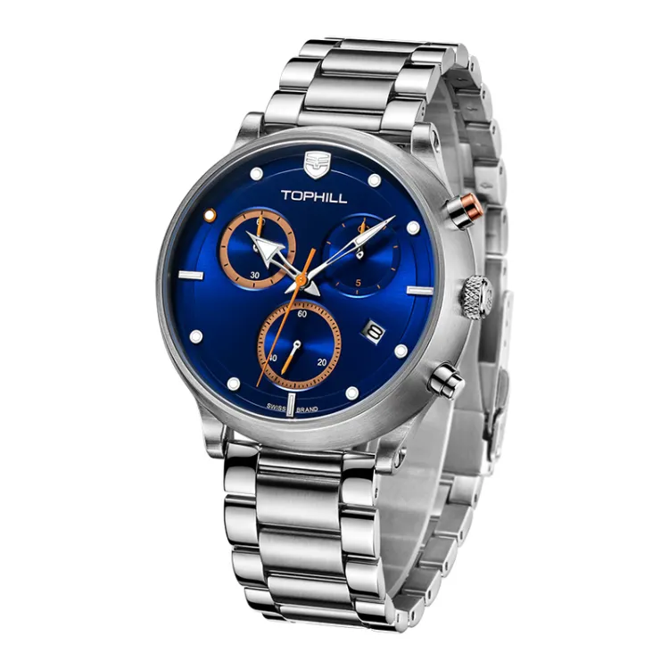 TOPHILL Кварцевый механизм ремешок из нержавеющей стали мужские часы синий циферблат