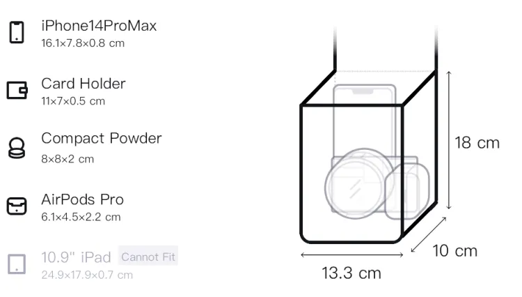 Длина 13,3 см * Ширина 10 см * Высота 18 см