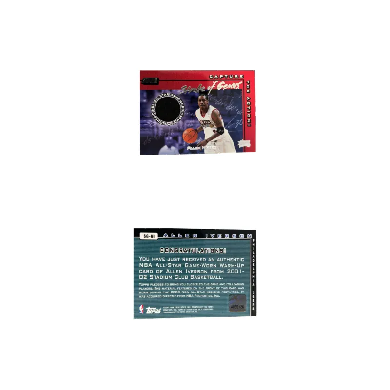 Topps Айверсон 2001 02 76 Персон Изношенный в игре Маленькое окно Карта Джерси Карта товара Спортивные карты Access 1 шт