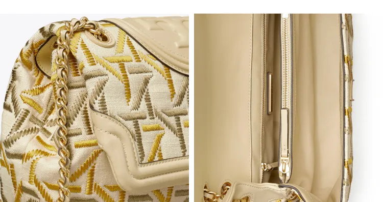 TORY BURCH Fleming Холст Плечевая Сумка Средняя Женская Естественный