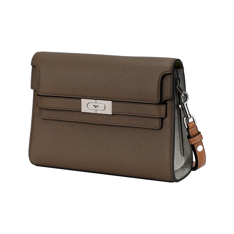 TORY BURCH Lee Radziwill Litchi Grain Кожа Плечевая Сумка Женская Mushroom Gray