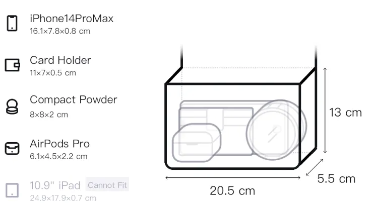 Длина*Ширина*H: 20,5*5,5*13см