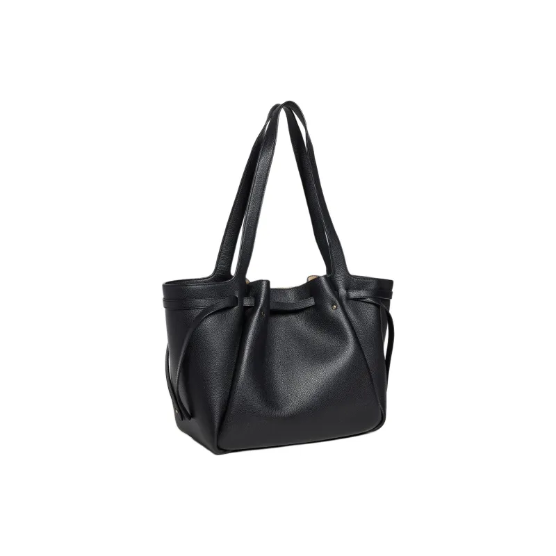 TORY BURCH Личий Зернистая Текстура Кожа Сумка-тоут Сумка для покупок Сумка через плечо Большая Женская Черная