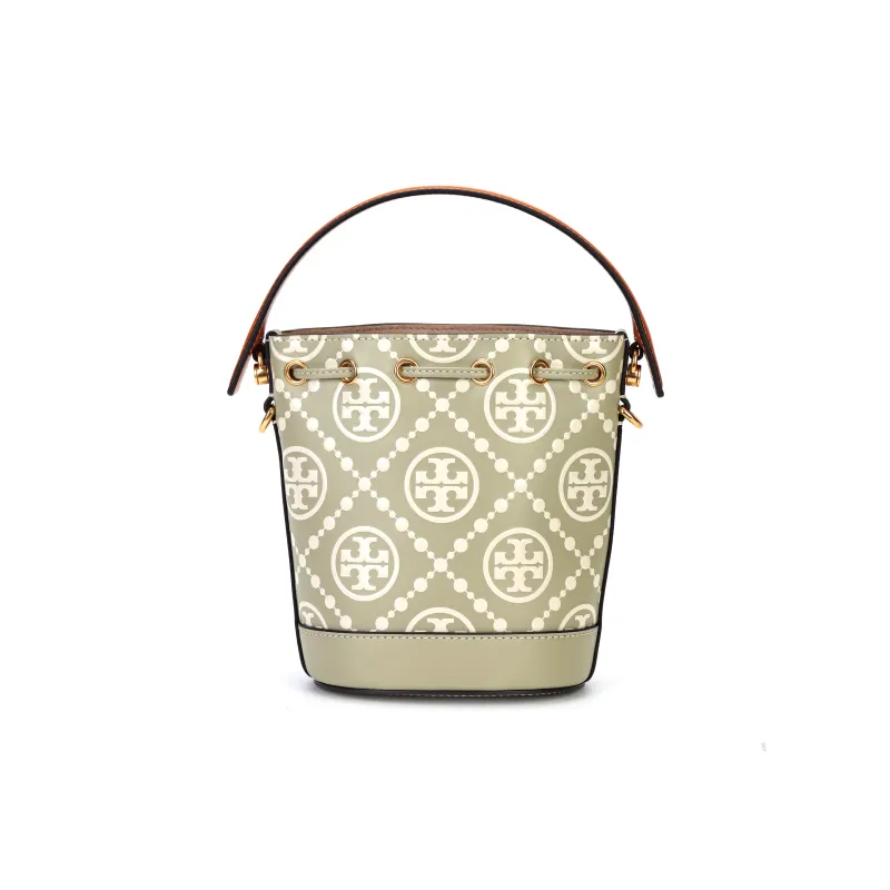 TORY BURCH T Monogram Коровья кожа Ведрообразная сумка Сумка через плечо Мини сумка Женская Оливковая