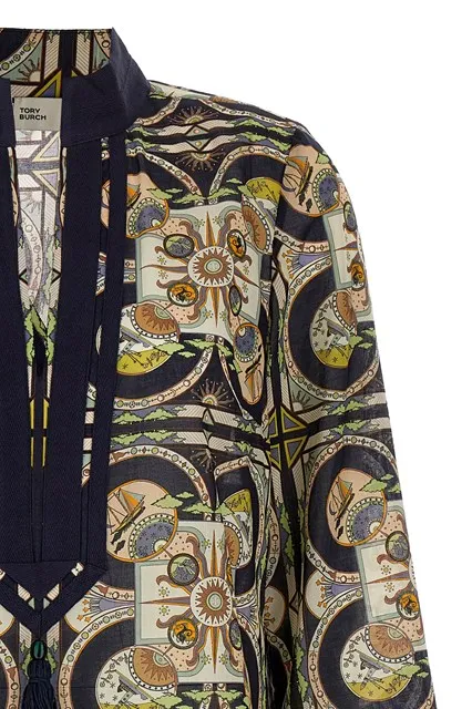 TORY BURCH Длинное платье с длинными рукавами женское многоцветное