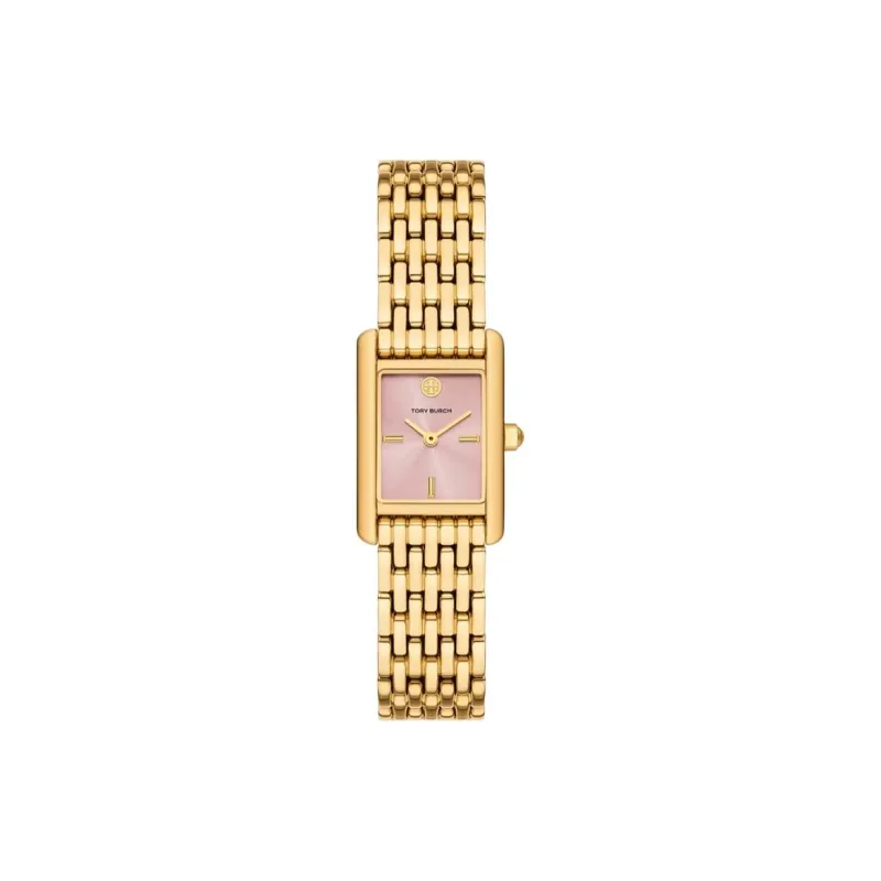 TORY BURCH Женские часы Кварцевый механизм Ремешок из нержавеющей стали 19*28 мм Розовый циферблат Часы
