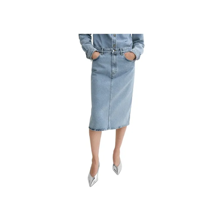 TOTEME Деним Длинная Юбка Женская Аква-Синий