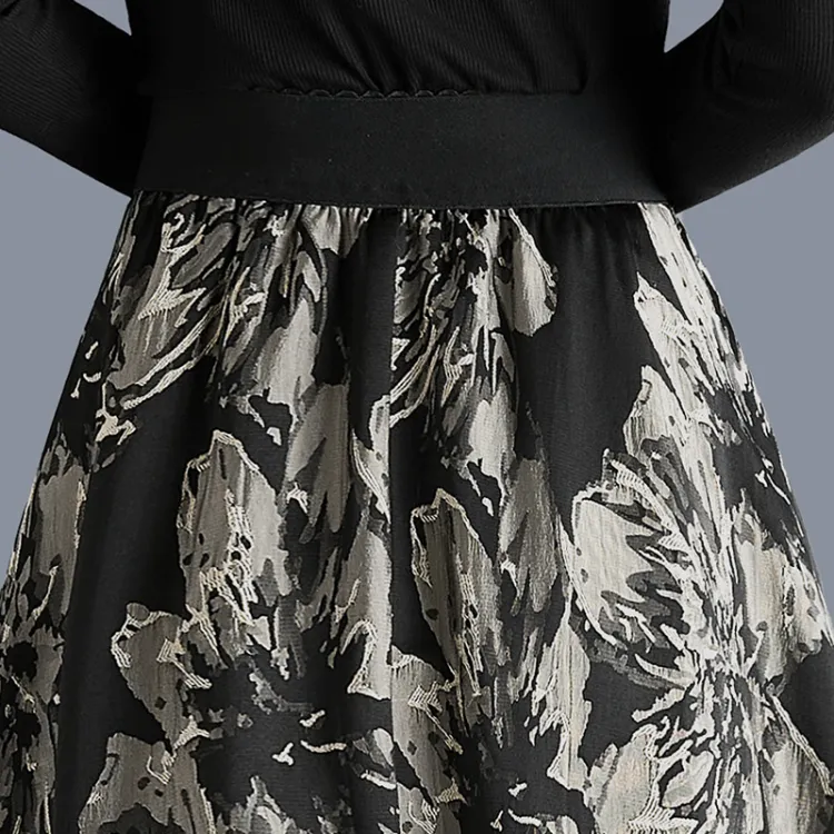Чёрная подошва с бежевым цветочным узором