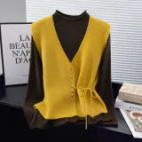 Топ: 56,5% вискоза, 28,8% полиэстер, 14,7% полиамид Жилет: 44% акрил, 31,1% полиэстер, 24,9% полиамид