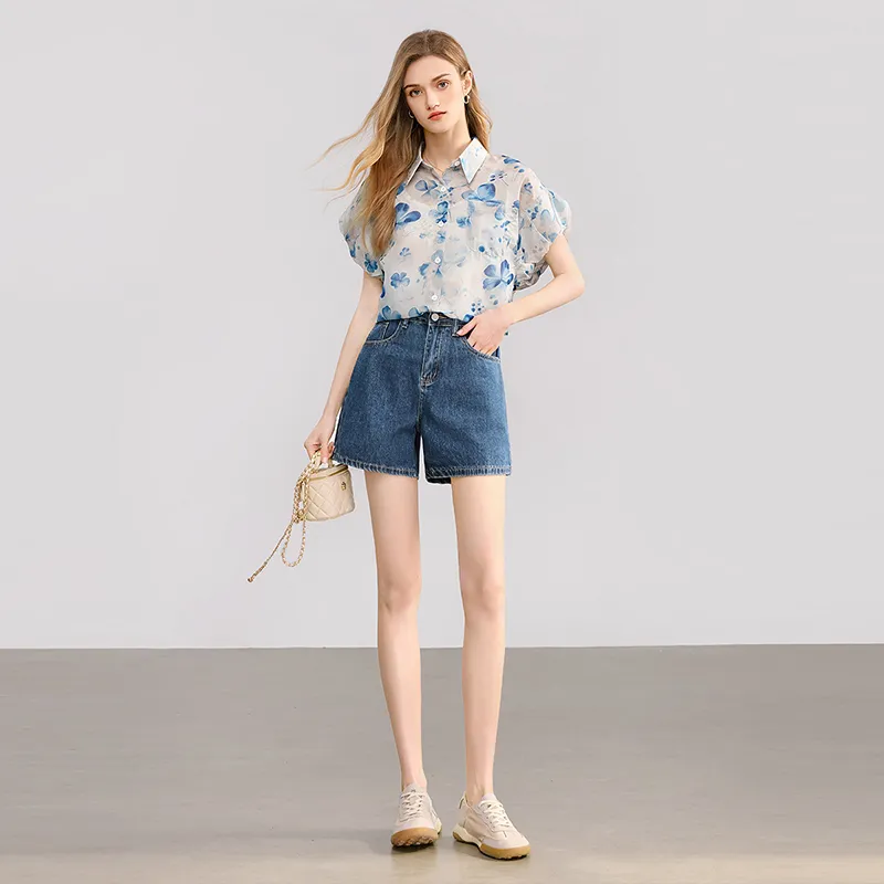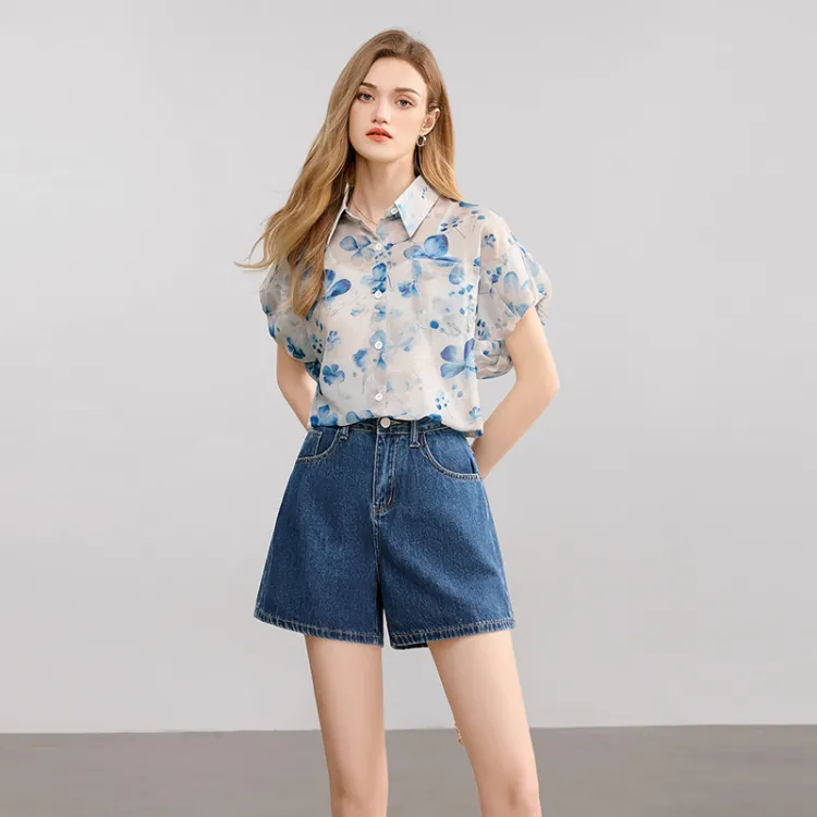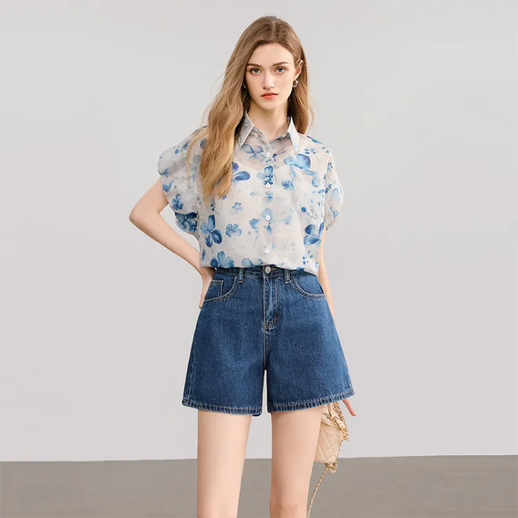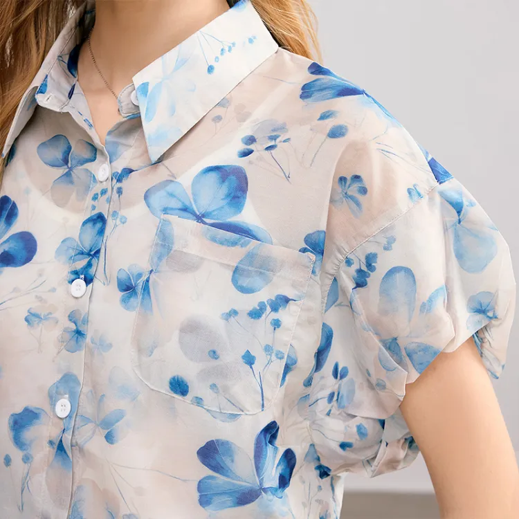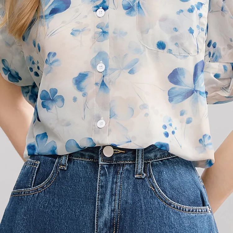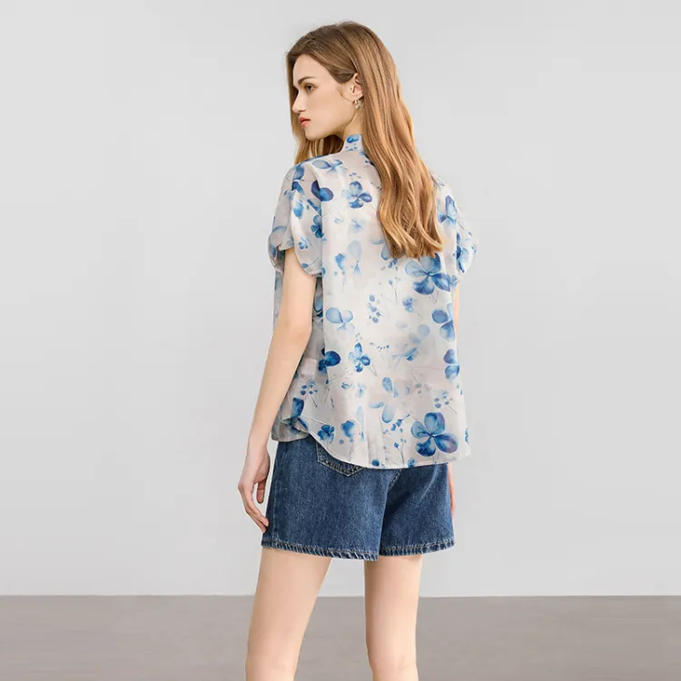 TOUCH Рубашка Женская Темно-синий Цветочный