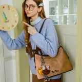 TOUTOU Синтетическая кожа текстиль Мозаика Сумка на плечо Стандартная Женская Какао-молочный Чай Абрикос