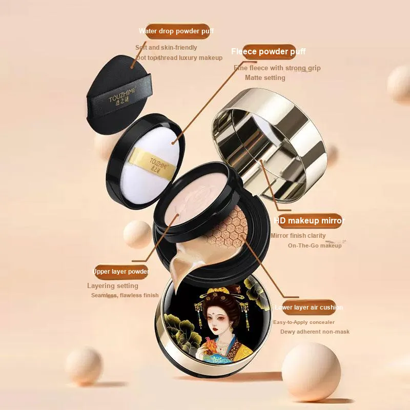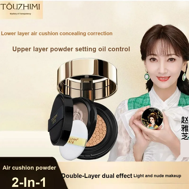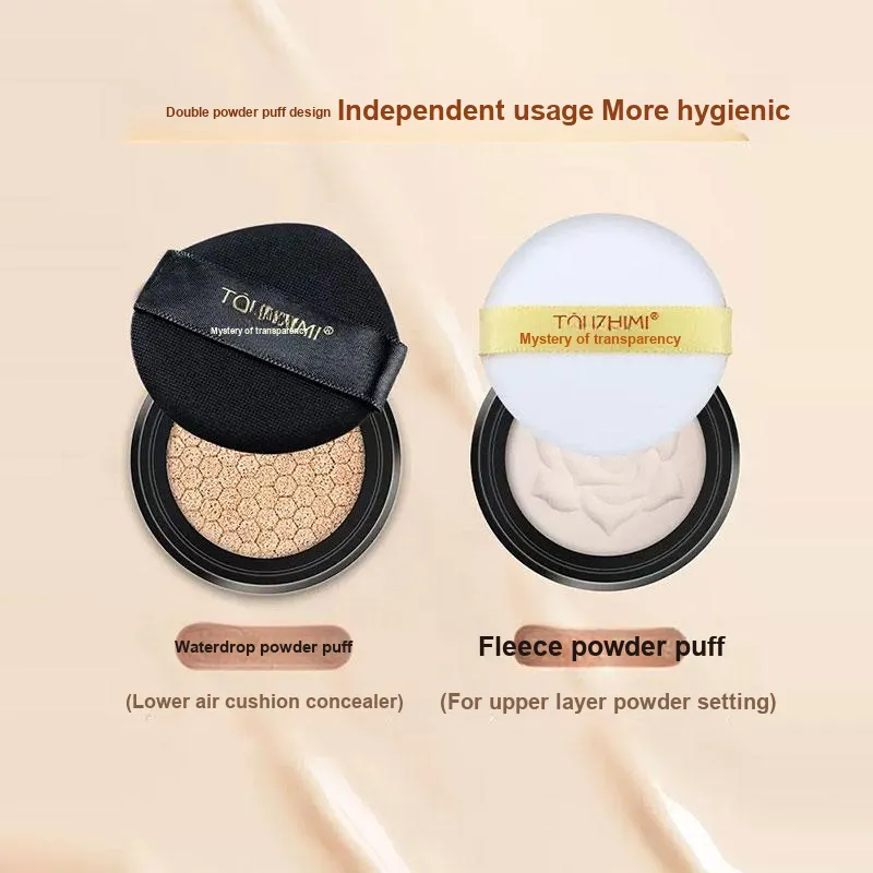 TOUZHIMI Двойной слой Air Cushion Пудра 2 в 1 Жидкость Основание Контроль жирности Естественный Долговечный Увлажнение