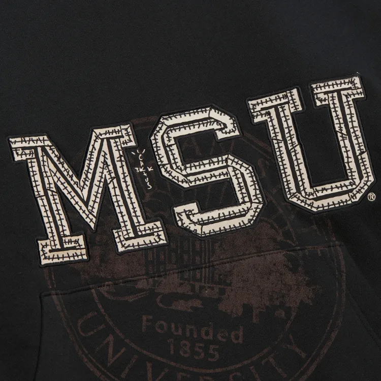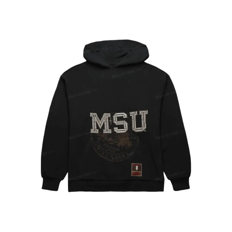 Travis Scott X Mitchell Ness Коллаборация SS24 Michigan State University Свитшот Унисекс Черный