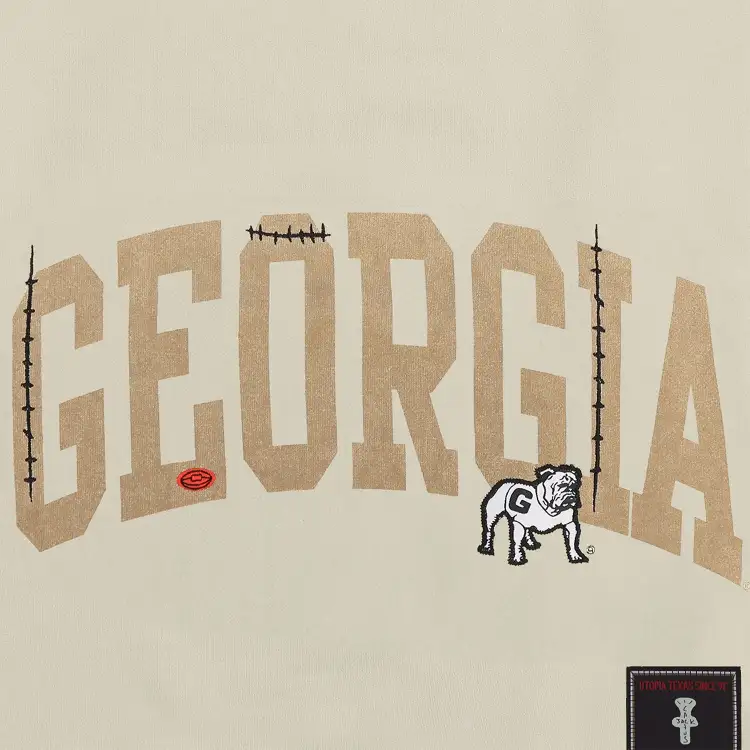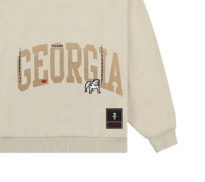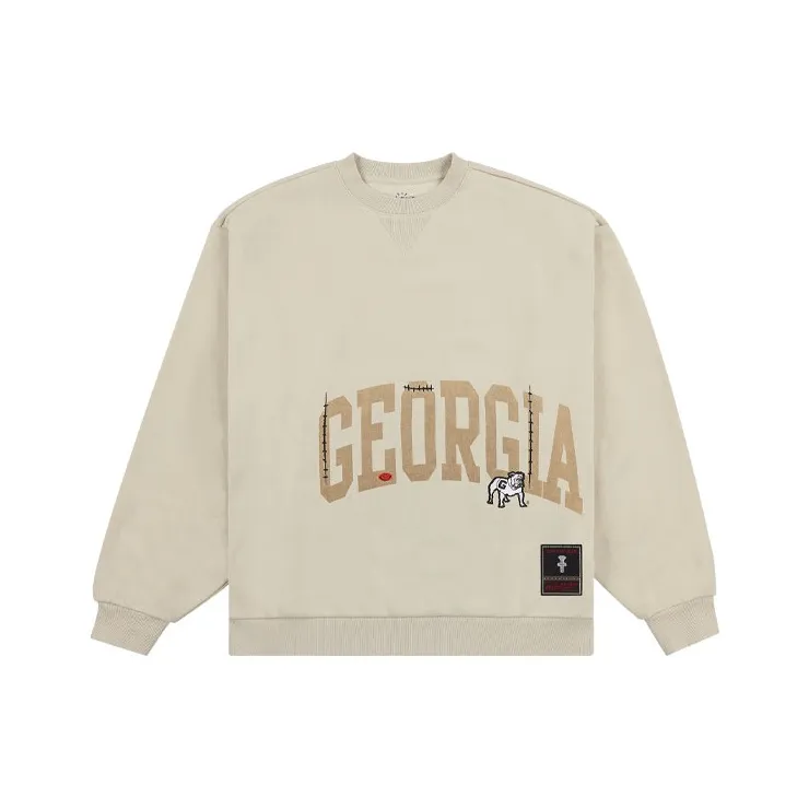 Travis Scott X Mitchell Ness Коллаборация SS24 Университетский OF Georgia Логотип Толстовка Унисекс Умбра