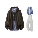 Комплект:Шоколад коричневый + сапфирово-синий рубашка + черный галстук + светло-серые штаны