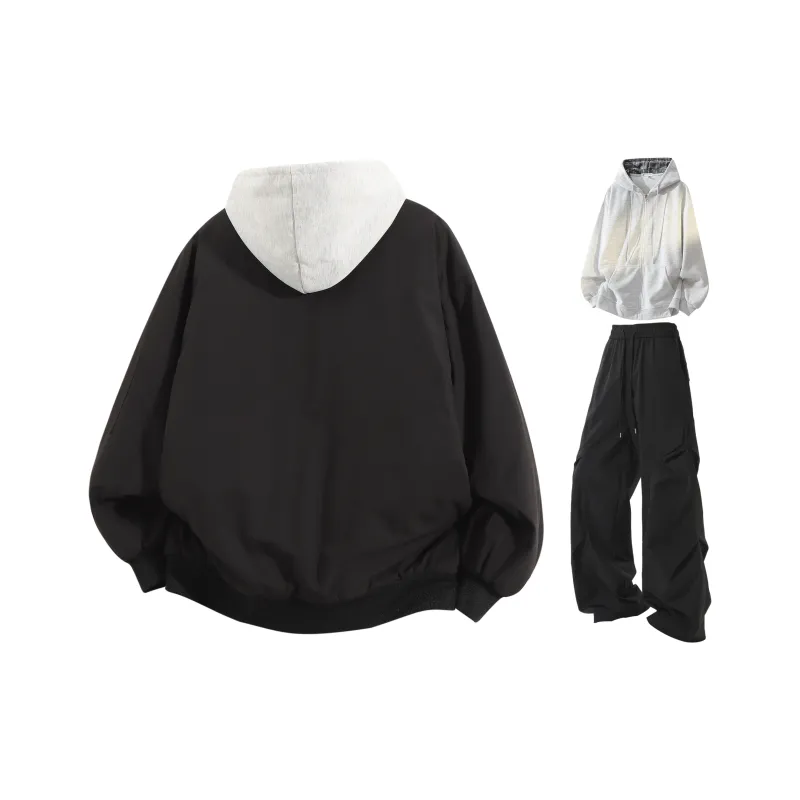 Чёрный+Белый Серый Свитшот+Чёрные Штаны