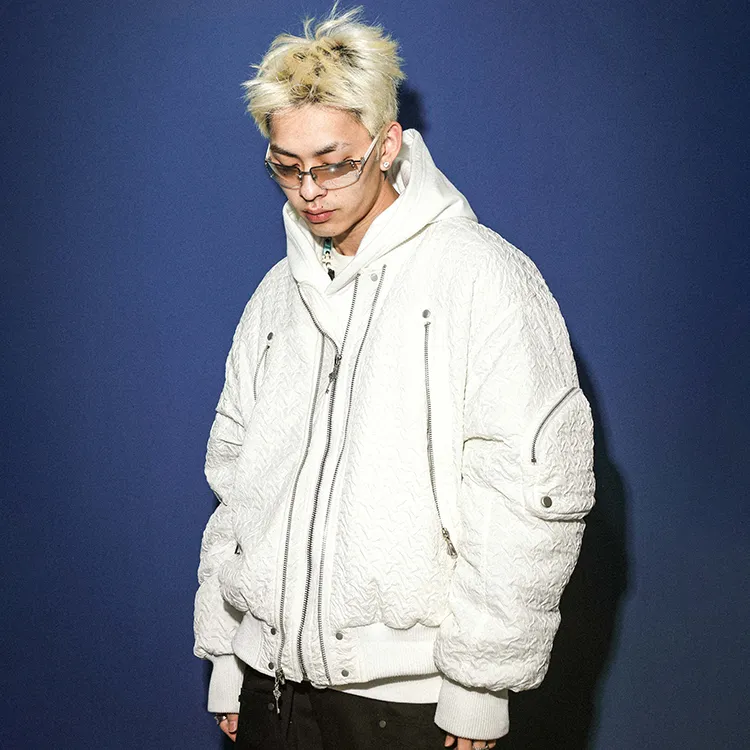 Tre Club Геометрический узор Бейсбольный воротник Свободный крой Утолщенный Короткий пуховик Унисекс