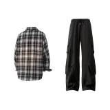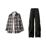 Жёлтая рубашка в клетку + чёрные штаны