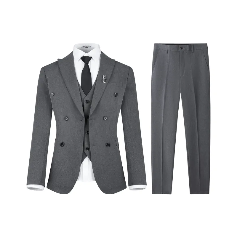 Комплект:Gray (Костюм + Жилет + Брюки делового костюма)