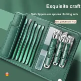 Ножницы для ногтей - Яшма - Кожаный чехол - 4-штучный комплект - Стиль головы + Ложки для чистки ушей - Яшма - Коробка включена - 6-штучный комплект