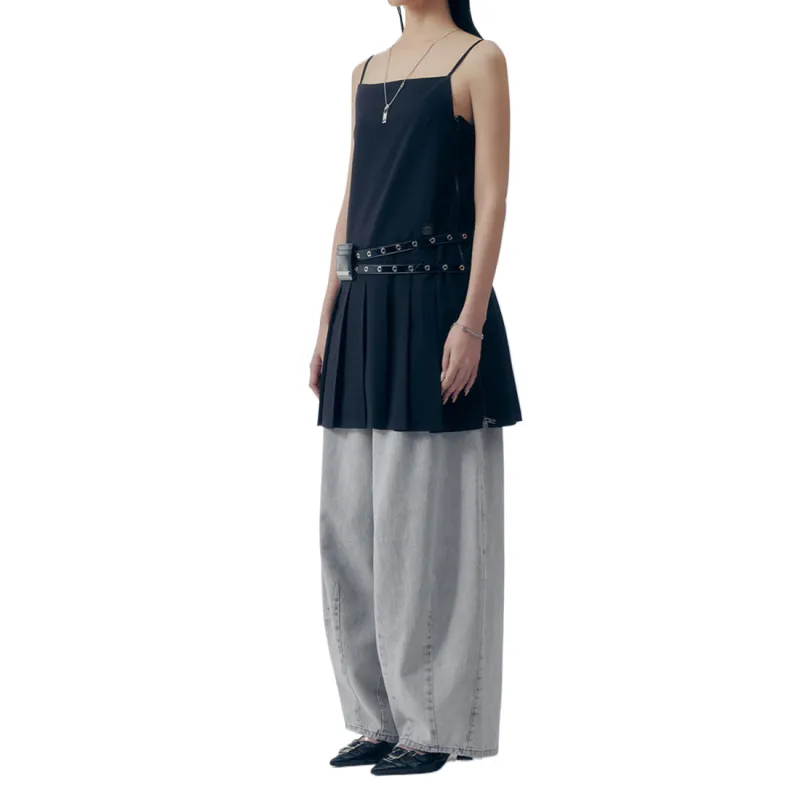 TREEMINGBIRD Фартук Плиссированный Ван-Пис Slip Платье Женское