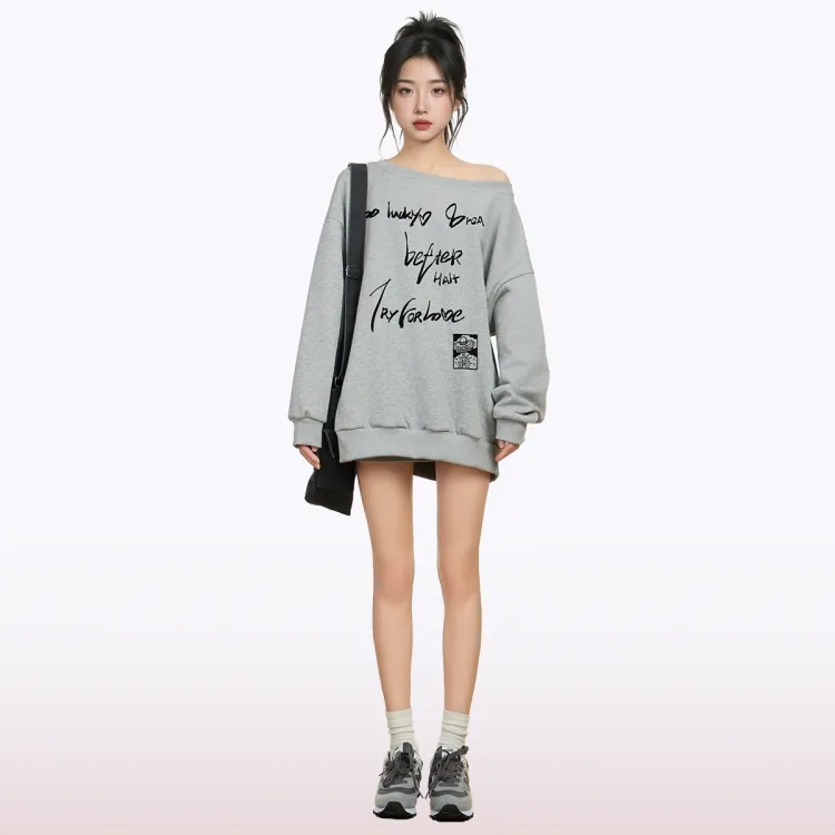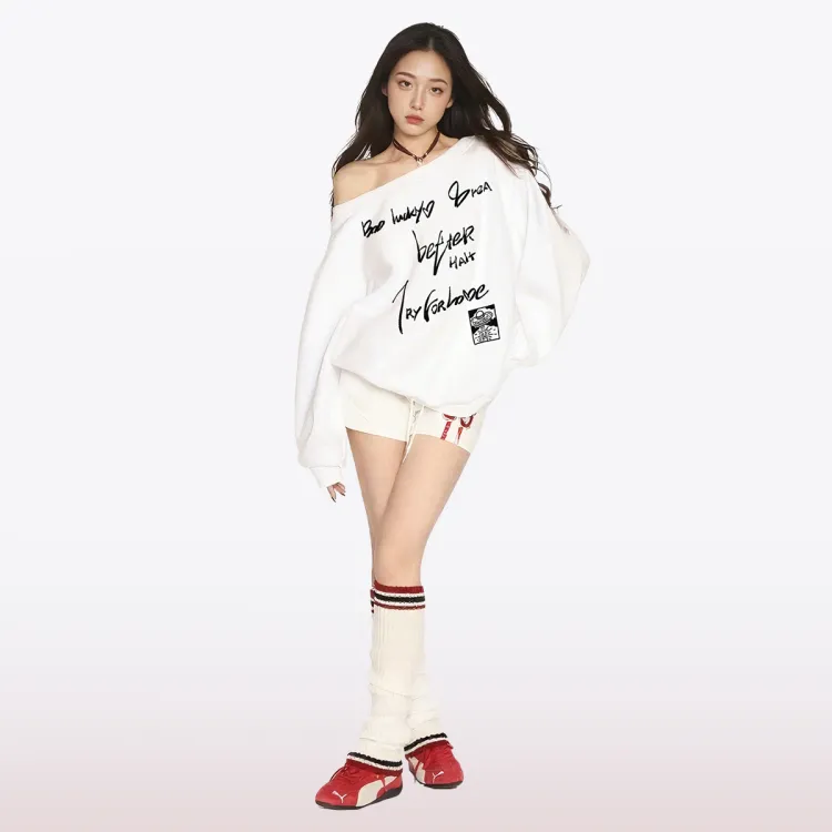 Белый свитшот с круглым вырезом