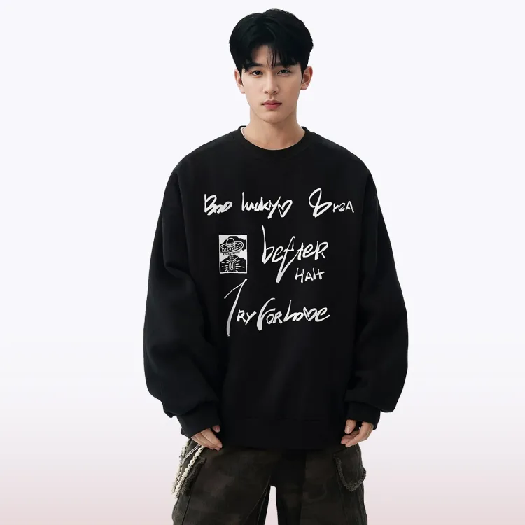 Черный свитшот с круглым вырезом