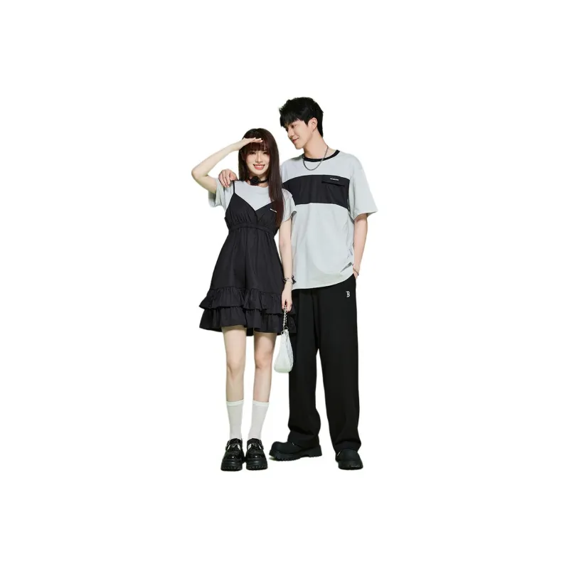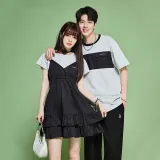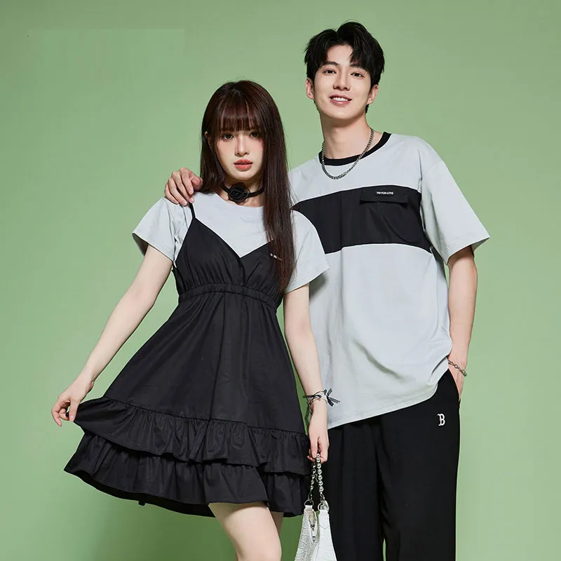 Tryforlove Женская Черная Короткая футболка + Платье с бретелями + Мужская Серая Короткая футболка. Унисекс Парные комплекты