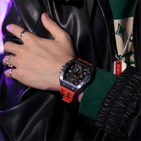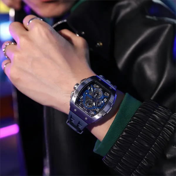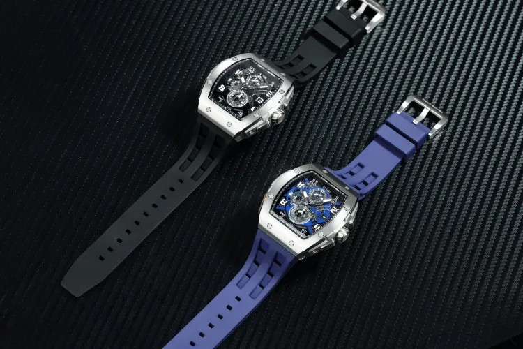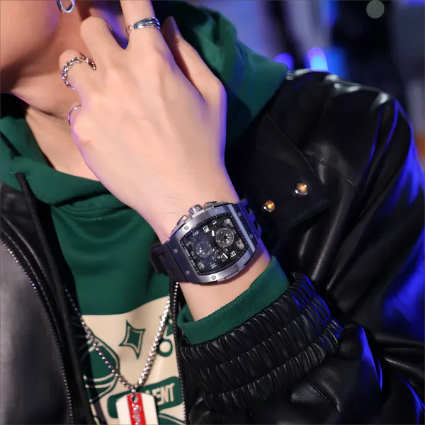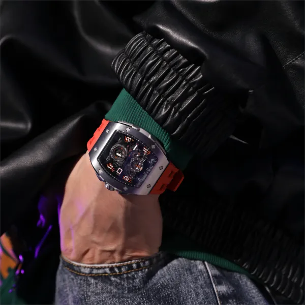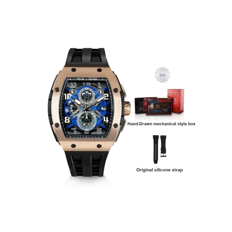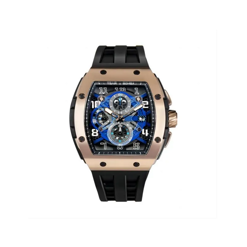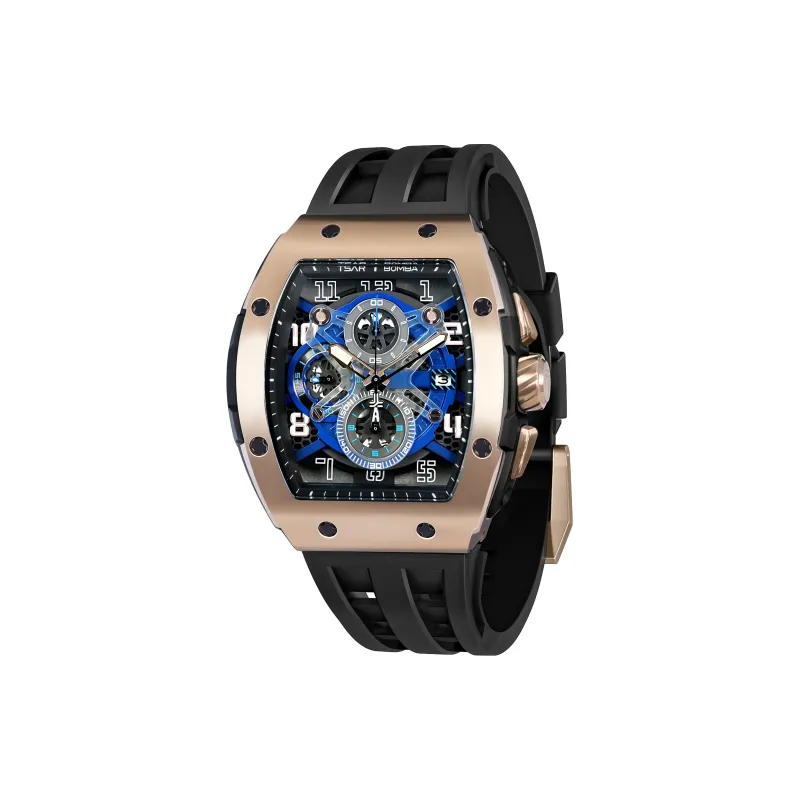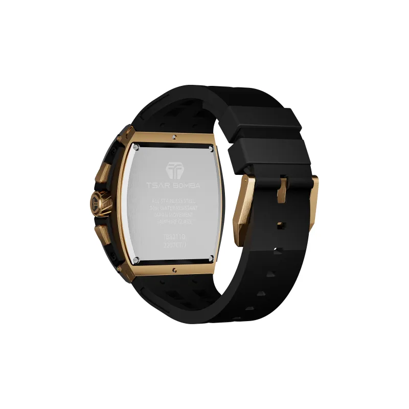 TSAR BOMBA Кварцевый механизм Eco Friendly Ремешок из фторкаучука Мужские часы Черный циферблат
