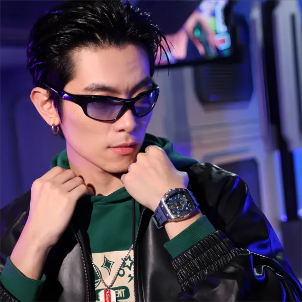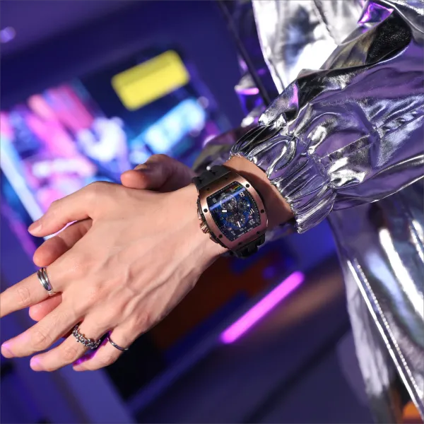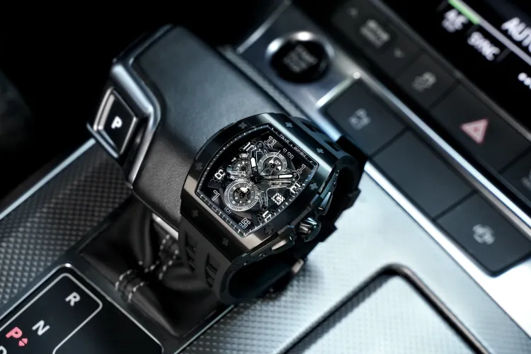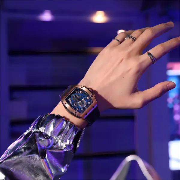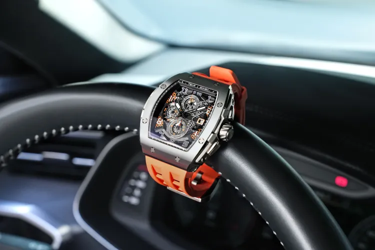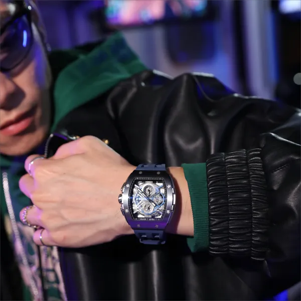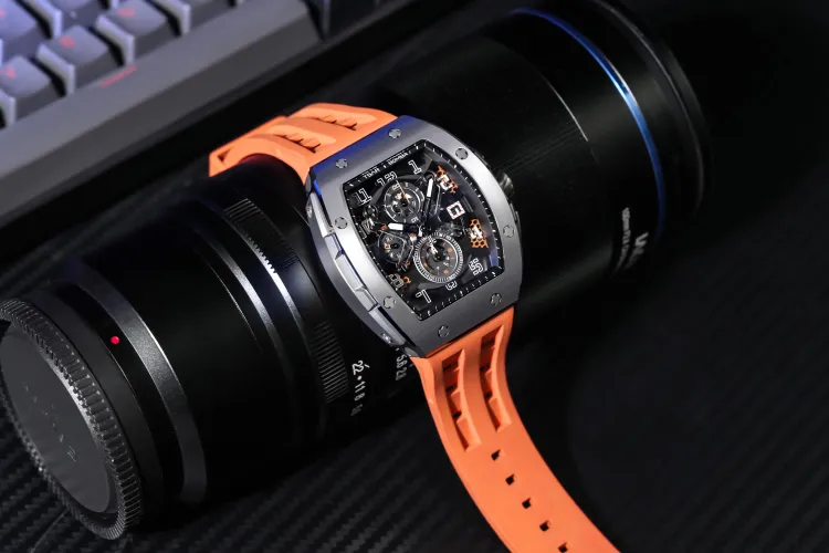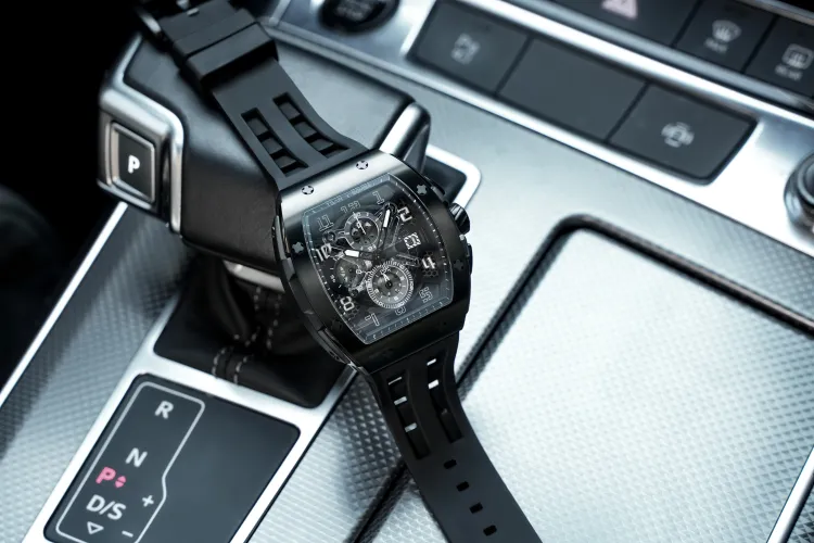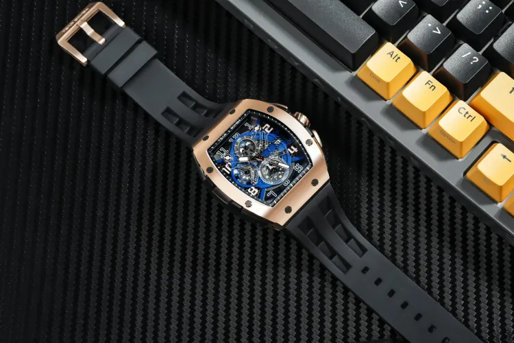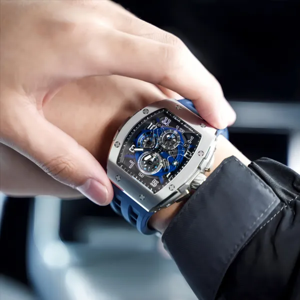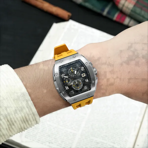 TSAR BOMBA Кварцевый механизм Eco Friendly Ремешок из фторкаучука Мужские часы Черный циферблат