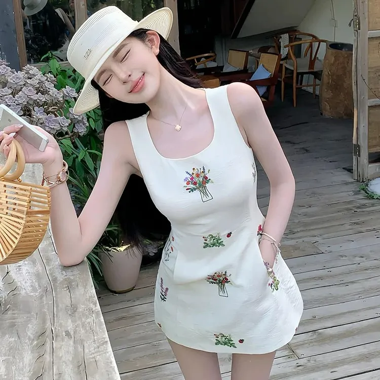 TSKIU Белые Женские Платья без рукавов