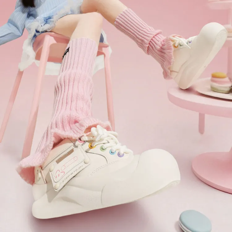 TTKJ Модный Удобный Макарон Мягкая подошва Круглый носок Белый Кроссовки