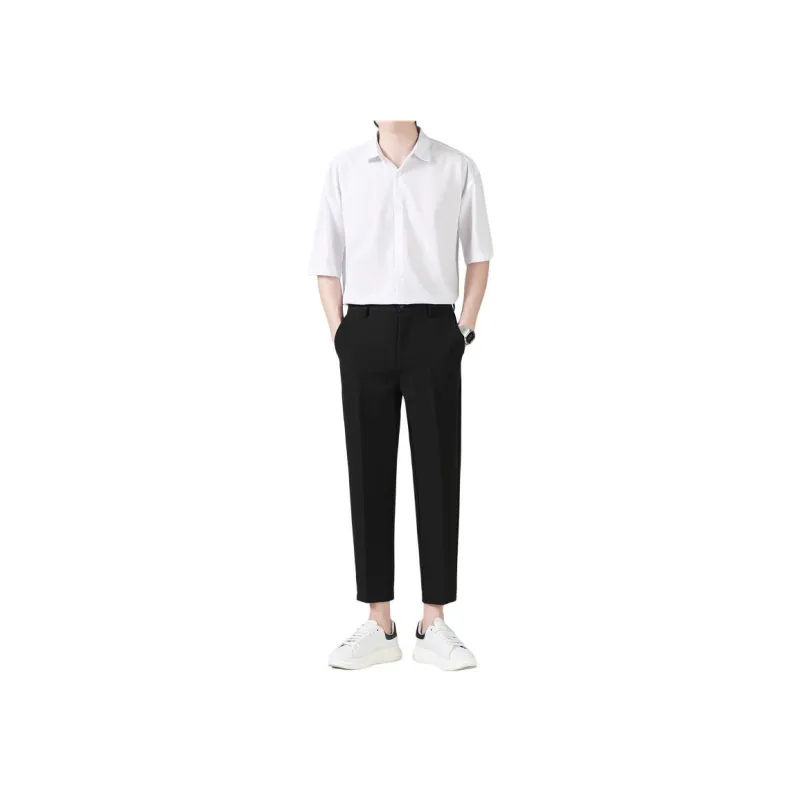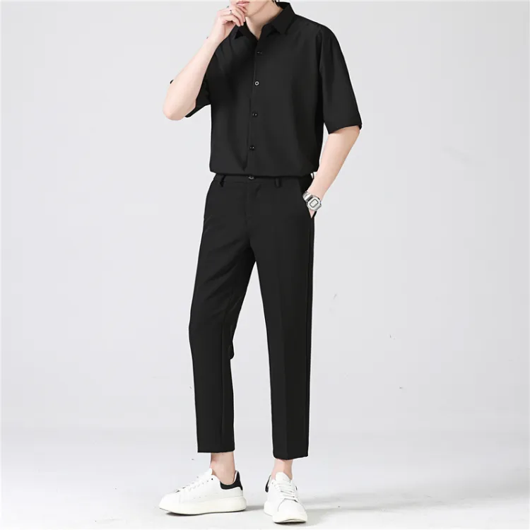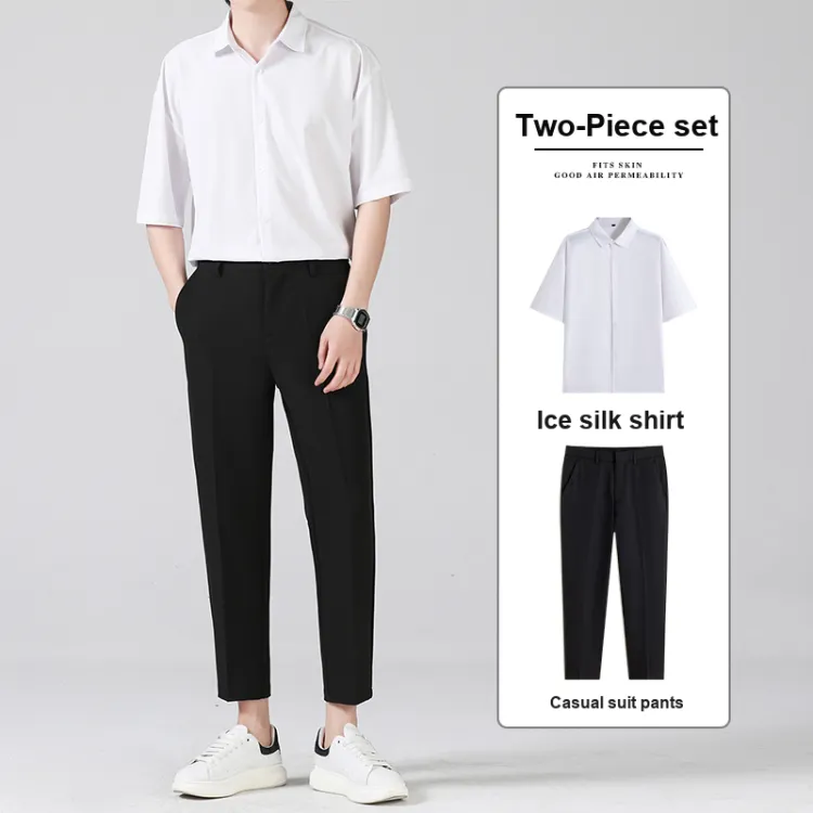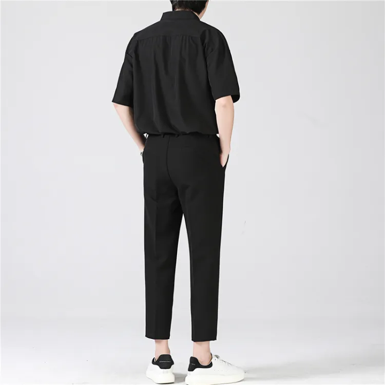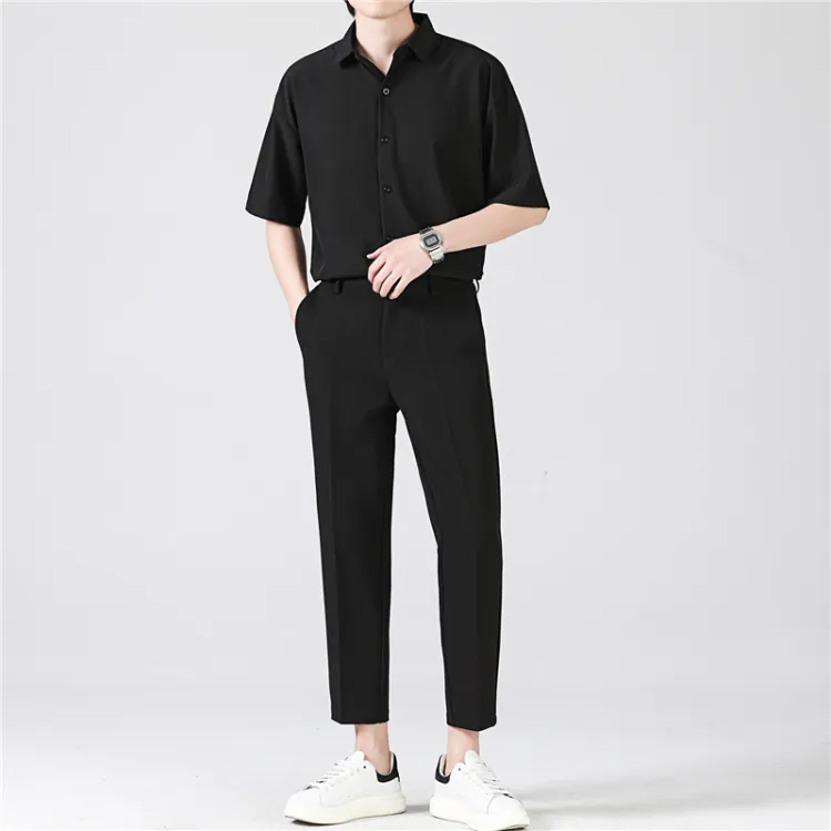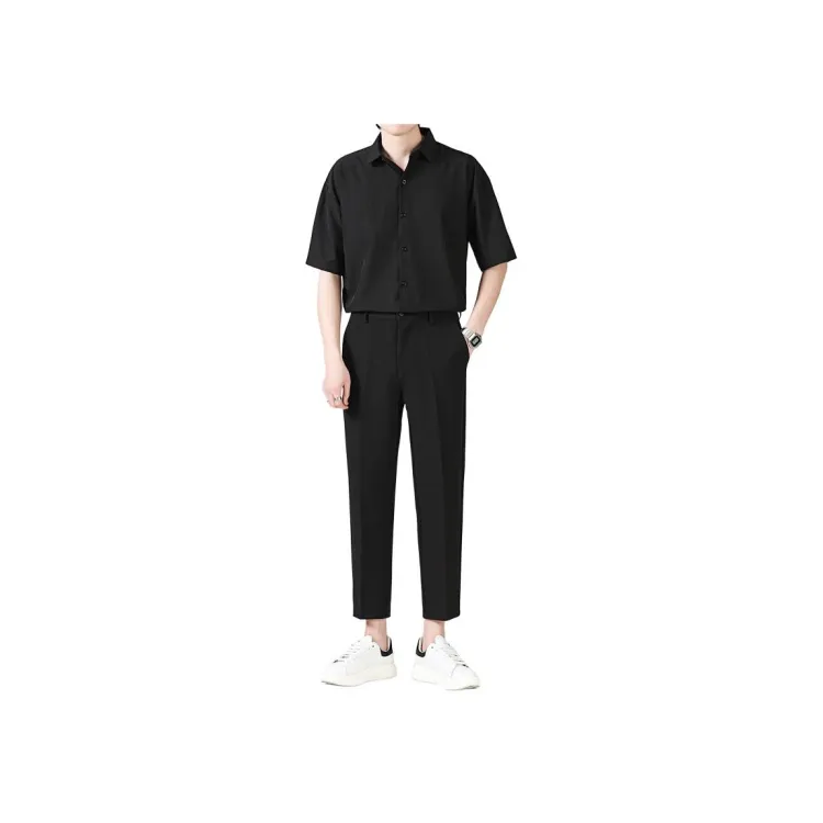Комплект:Белая рубашка с короткими рукавами + черные штаны длиной до щиколотки