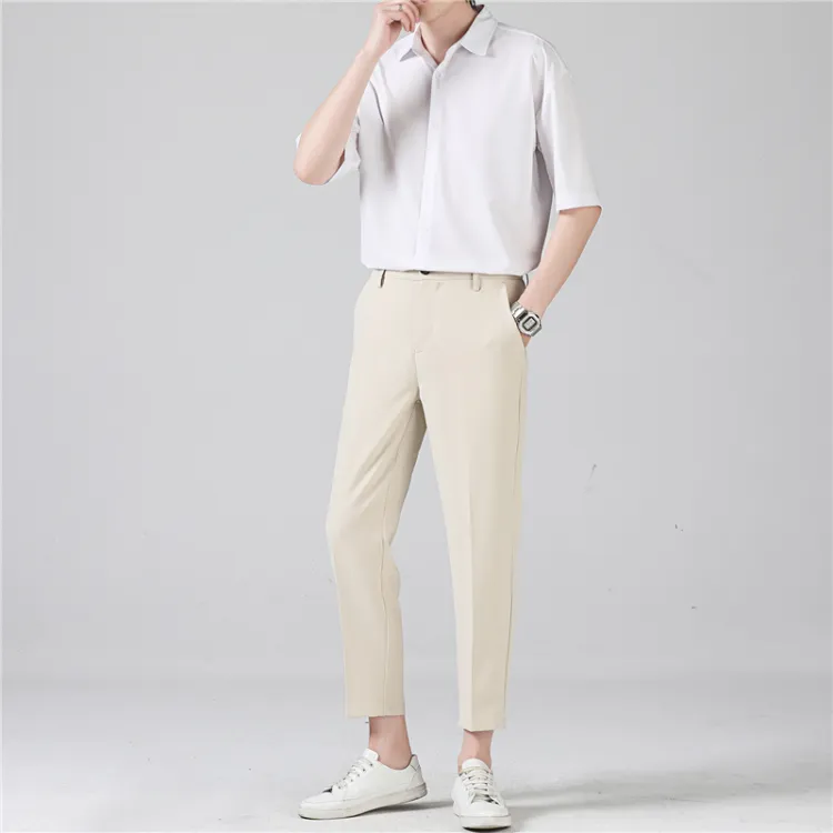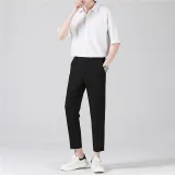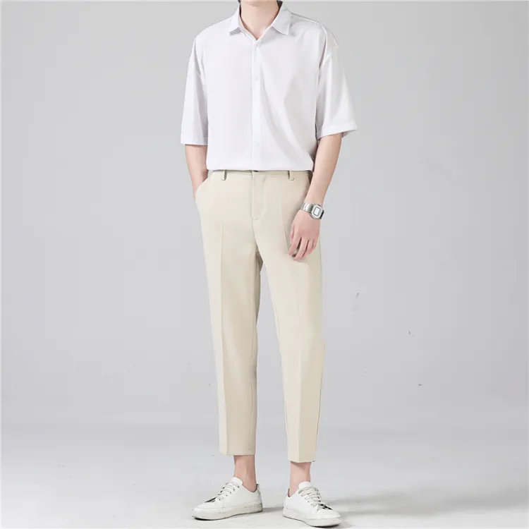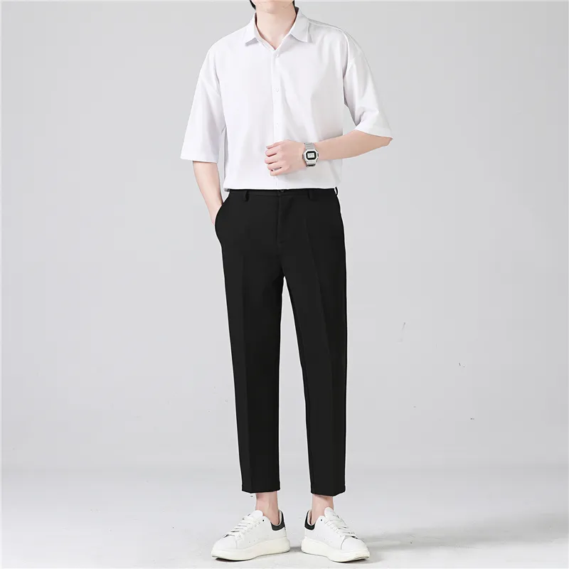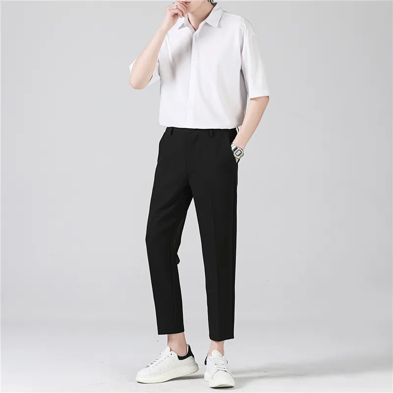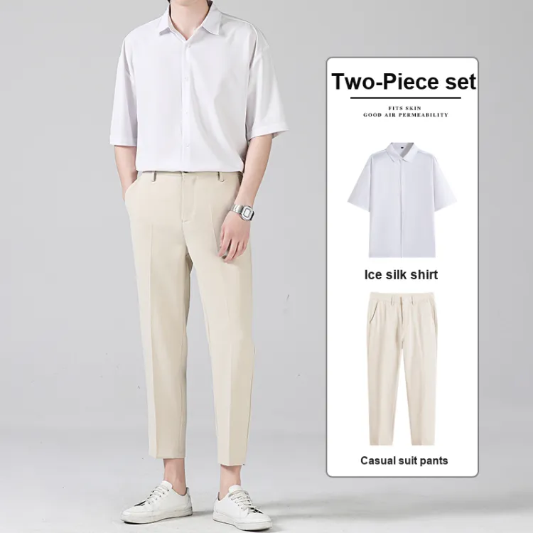 Комплект:Белая рубашка с короткими рукавами + черные штаны длиной до щиколотки