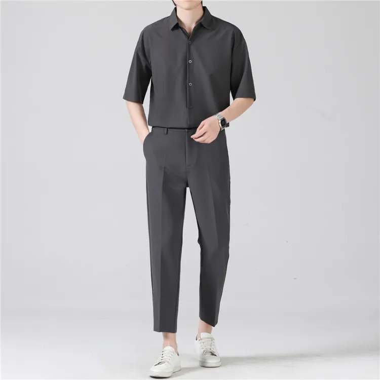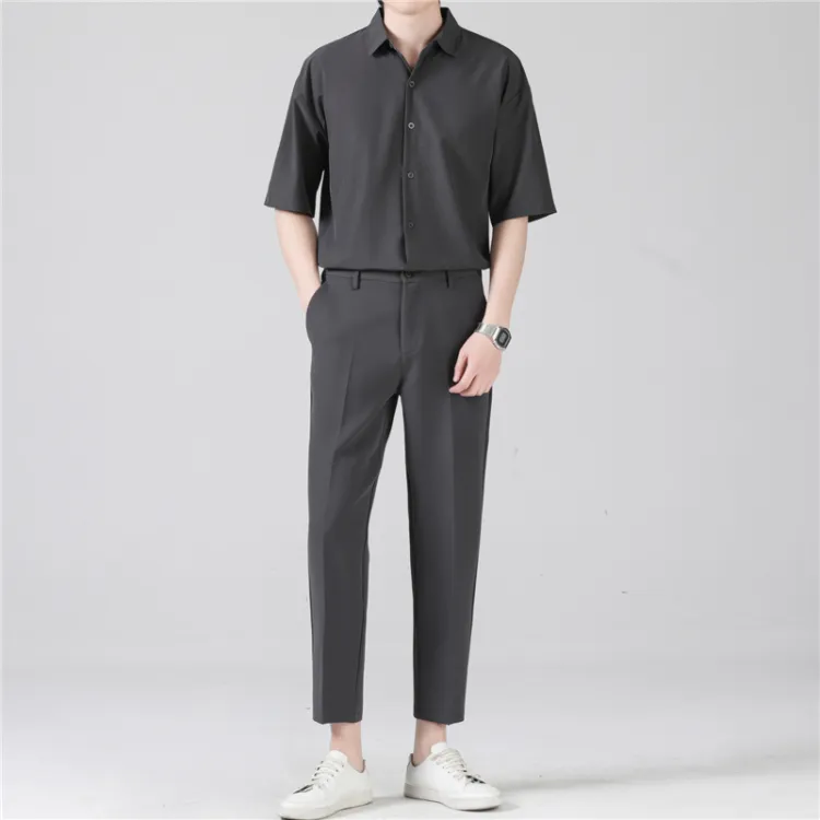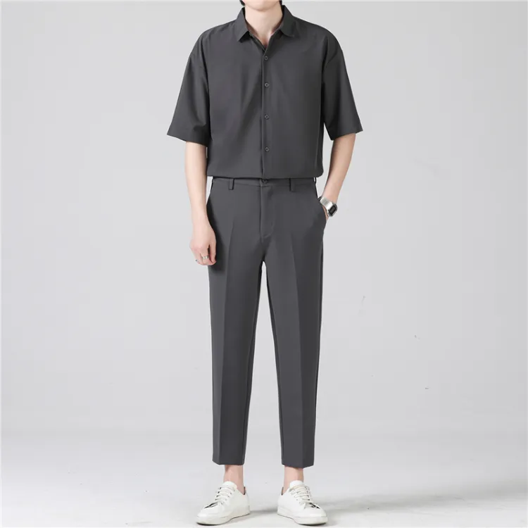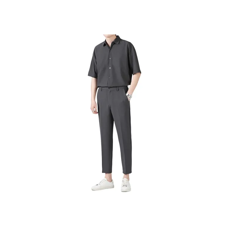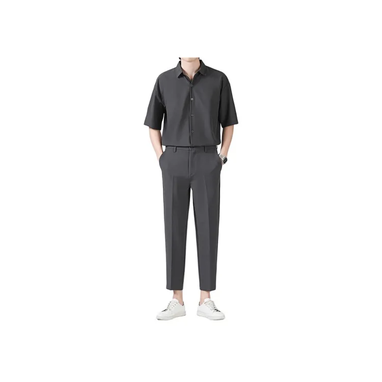 Темно-серая рубашка с коротким рукавом + темно-серая штанина длиной до щиколотки