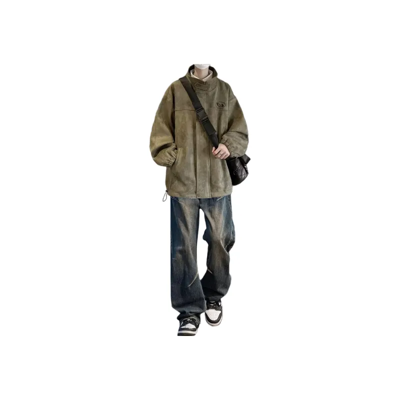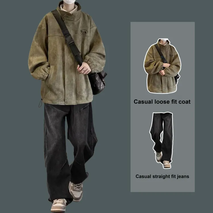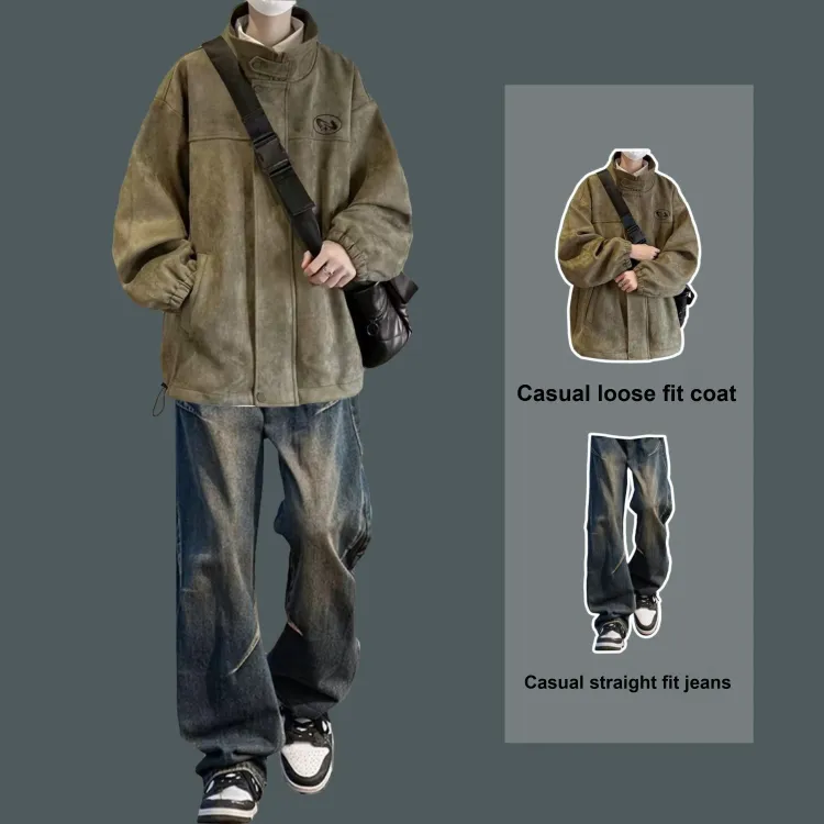 Комплект:Двухкомпонентный комплект (Зеленая куртка + Винтажные синие джинсы)