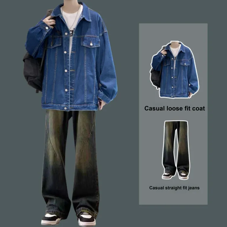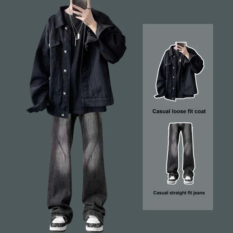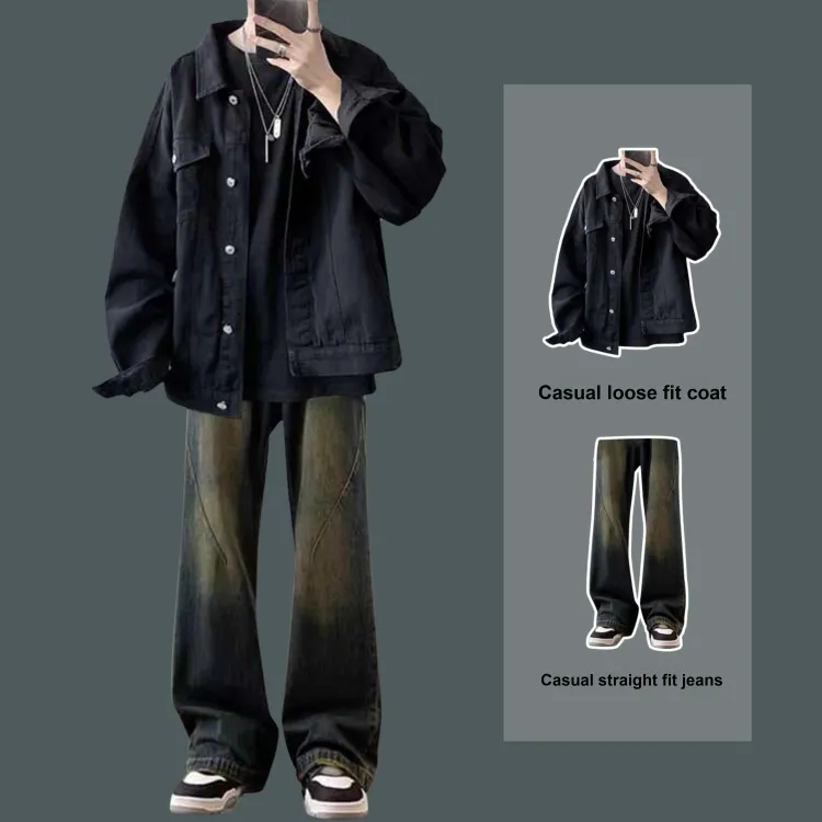 Двухкомпонентный комплект (Черная куртка + Синие джинсы)