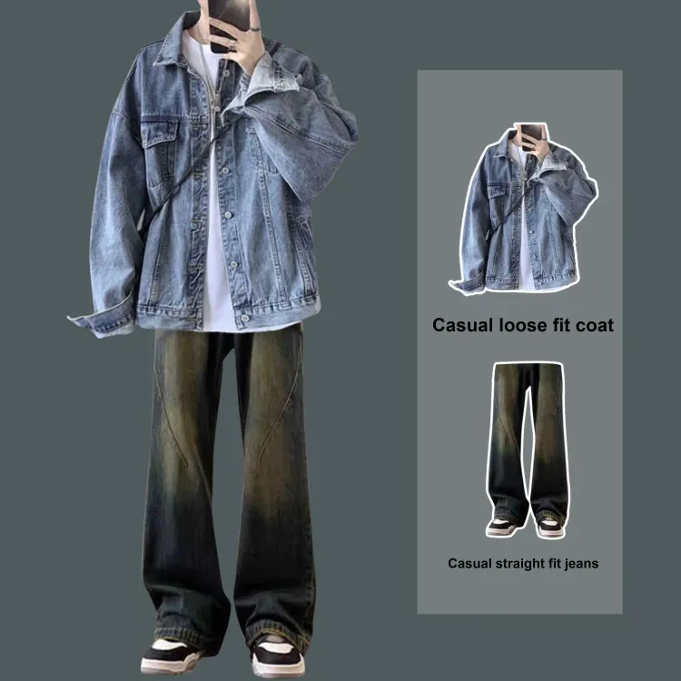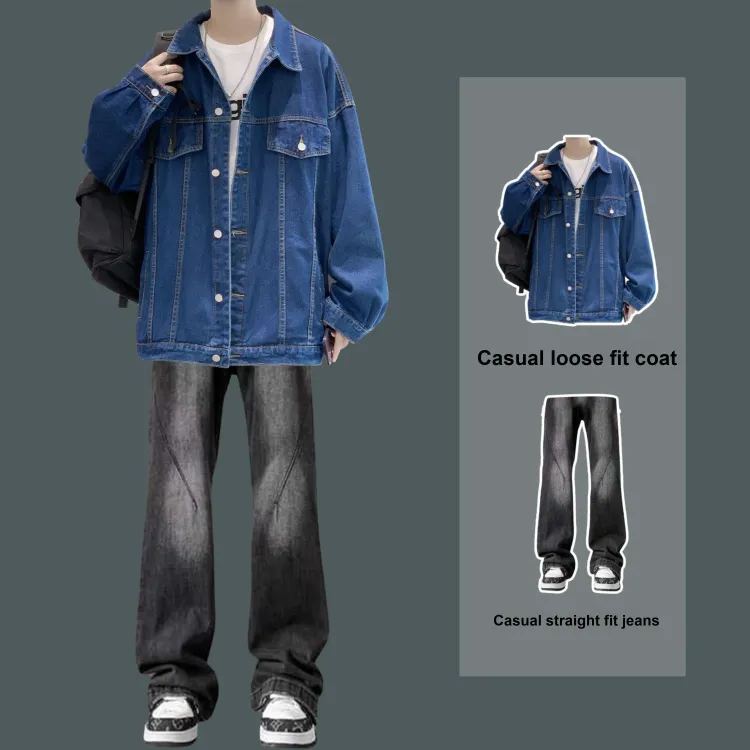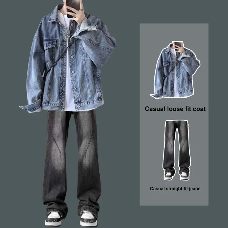 Комплект:Двухкомпонентный комплект (Черная куртка + Синие джинсы)