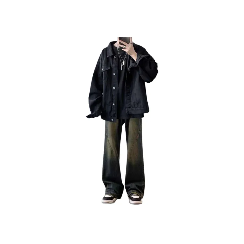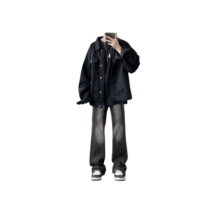 Двухкомпонентный комплект (Черная куртка + Черные джинсовые штаны)